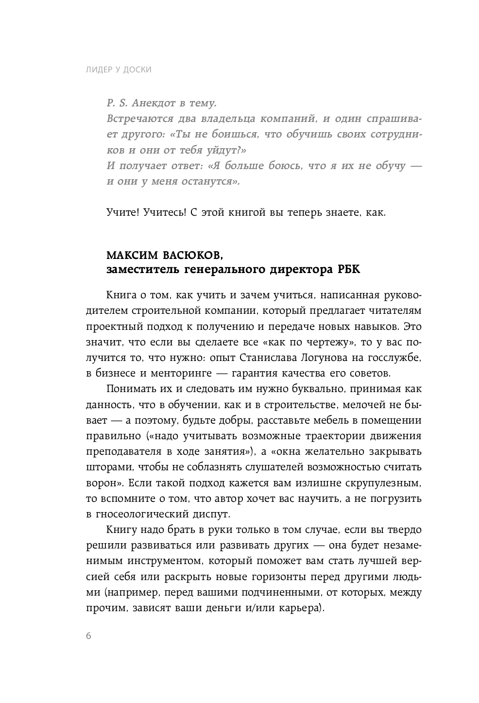 Эта книга для специалистов, только начинающих строить карьеру, и для состоявшихся руководителей, готовых делиться опытом. Это книга о том, как эффективно учиться, как правильно учить и как создать обучающую компанию. Автор на собственном примере показывает, что даже не самый усидчивый ученик может научиться учиться и учить.