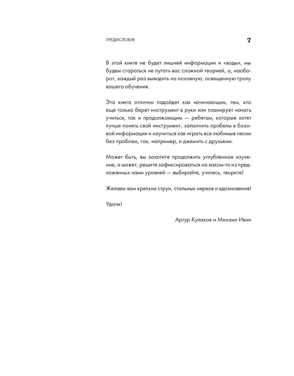 Путь любого шестиструнного самоучки всегда похож получением очень разрозненных знаний, добытых разным путем и отсутствием понятного плана обучения. Эту книгу написали такие же самоучки, которые вот уже более 20 лет не выпускают гитары из рук. Артур и Миша на собственном опыте досконально изучили все нюансы и трудности такого пути.