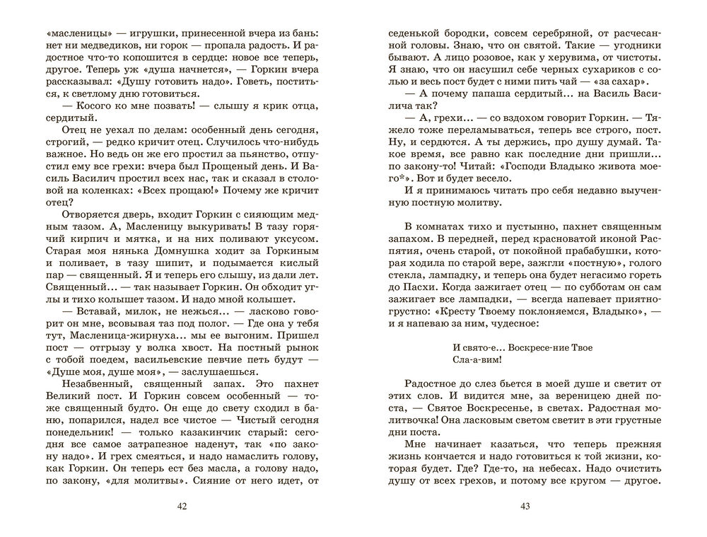 Повесть Ивана Сергеевича Шмелёва (1873-1950) "Лето Господне" – одна из самых светлых и радостных книг мировой литературы. Он писал ее более двадцати лет, в зрелом возрасте, пережив две мировые войны, три революции, эмиграцию, расстрел сына, голод и нищету, отъезд из любимой столицы в чужие негостеприимные европейские столицы, Берлин и Париж. И тем не менее сумел восстановить все сладостные впечатления детства.
