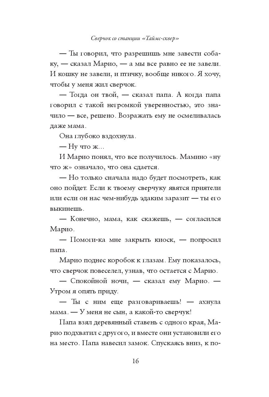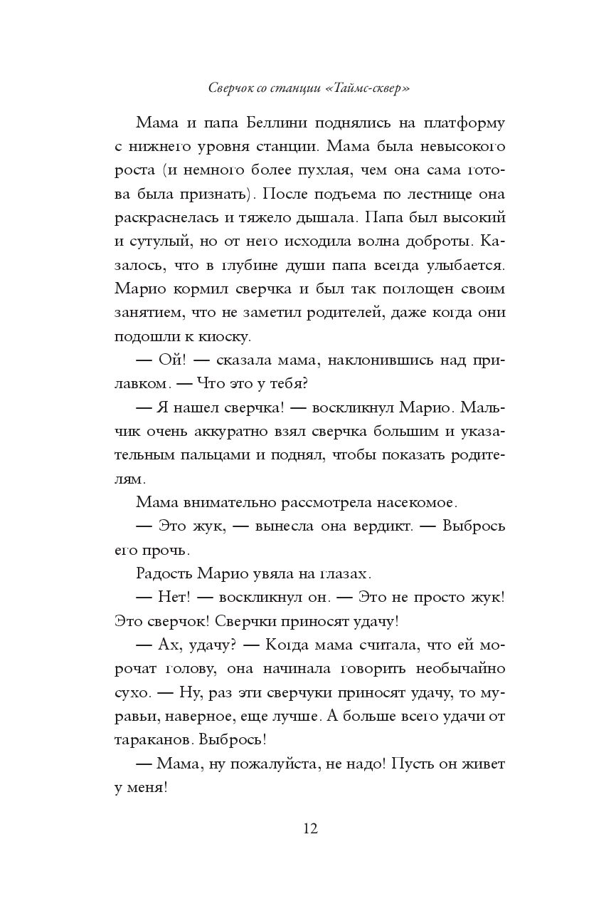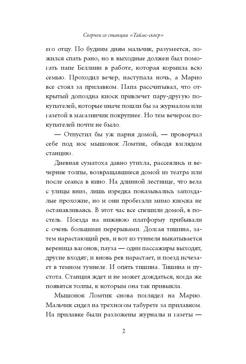 Сверчок Честер никогда бы не покинул свой луг, если бы не соблазнительный аромат колбасы из чьей-то корзинки для пикника... Так он оказался в огромном городе, на людной станции метро. Но ему повезло познакомиться с мышонком Ломтиком, котом Гарри и мальчиком Марио, и они становятся его друзьями по приключениям. Однако очень скоро выясняется, что у Честера есть совершенно особый талант и деревенский сверчок способен кое-чему научить жителей стремительного города.