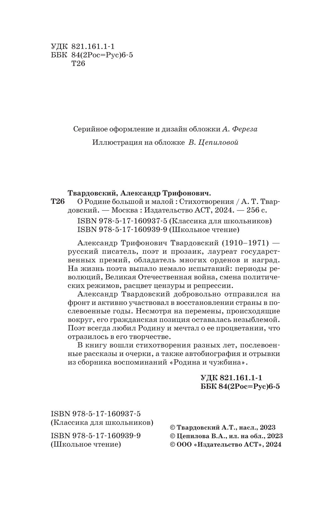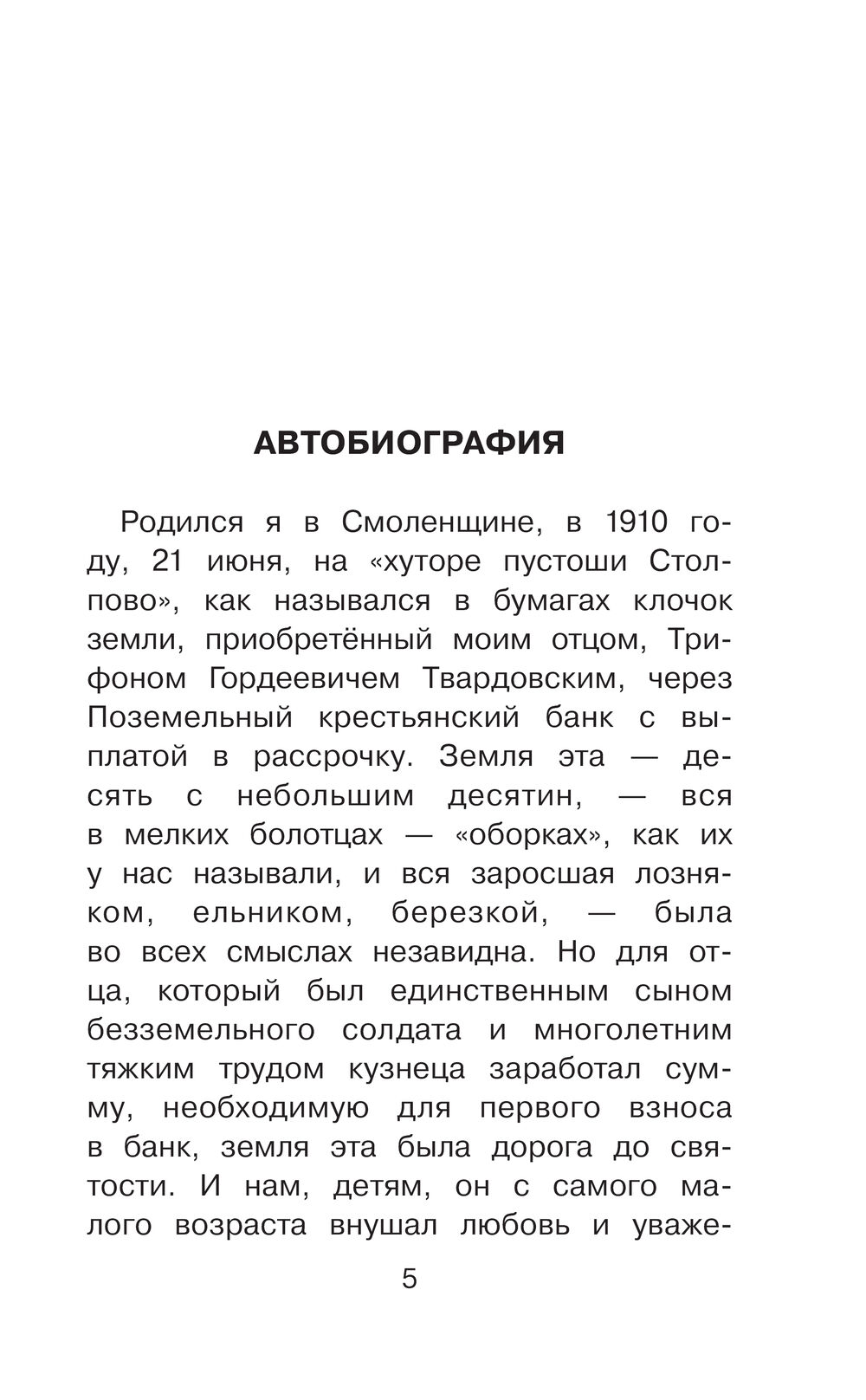 Александр Трифонович Твардовский (1910-1971) – русский писатель, поэт и прозаик, лауреат государственных премий, обладатель многих орденов и наград. На жизнь поэта выпало немало испытаний: периоды революций, Великая Отечественная война, смена политических режимов, расцвет цензуры и репрессии. Александр Твардовский добровольно отправился на фронт и активно участвовал в восстановлении страны в послевоенные годы. Несмотря на перемены, происходящие вокруг, его гражданская позиция оставалась незыблемой. Поэт всегда любил Родину и мечтал о ее процветании, что отразилось в его творчестве.