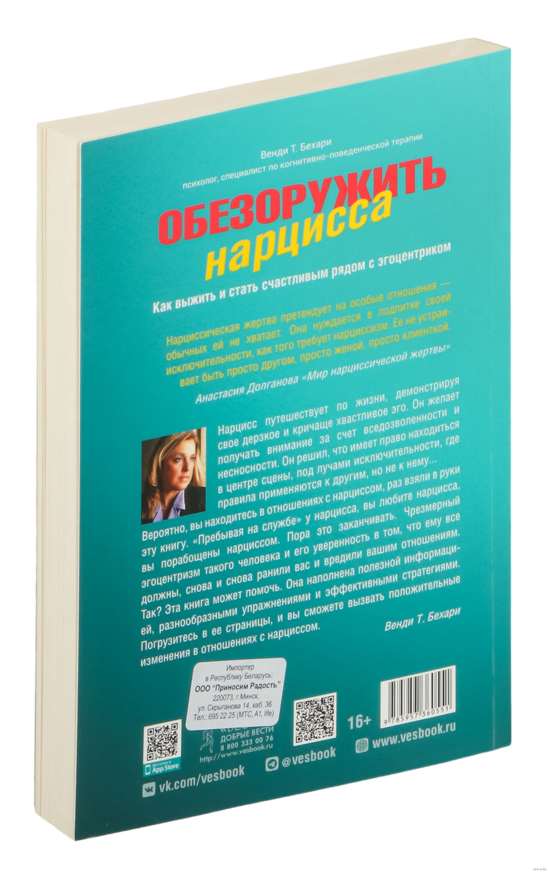 Книга "Обезоружить нарцисса" поможет взаимодействовать с человеком-нарциссом без взаимных оскорблений, битв за власть и бессмысленных споров – используя лишь эмпатию и способы установления границ. Психолог Венди Бехари применяет такой подход уже более 20 лет, и ее опыт показал, что это самый действенный способ жить счастливо рядом с нарциссом.