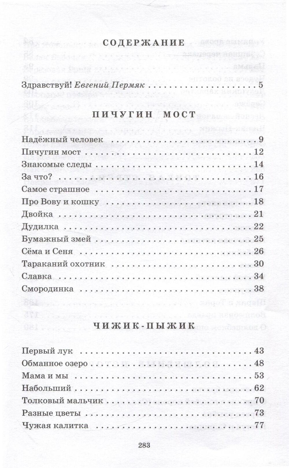 В книгу вошли лучшие рассказы и сказки для школьников, созданные писателем в разные годы его творческой жизни: "Пичугин мост", "Чижик-Пыжик", "Самое страшное", "Смородинка", "Чужая калитка", "Памятная охота", "Иголкины братья", "Волшебные истории" и другие.