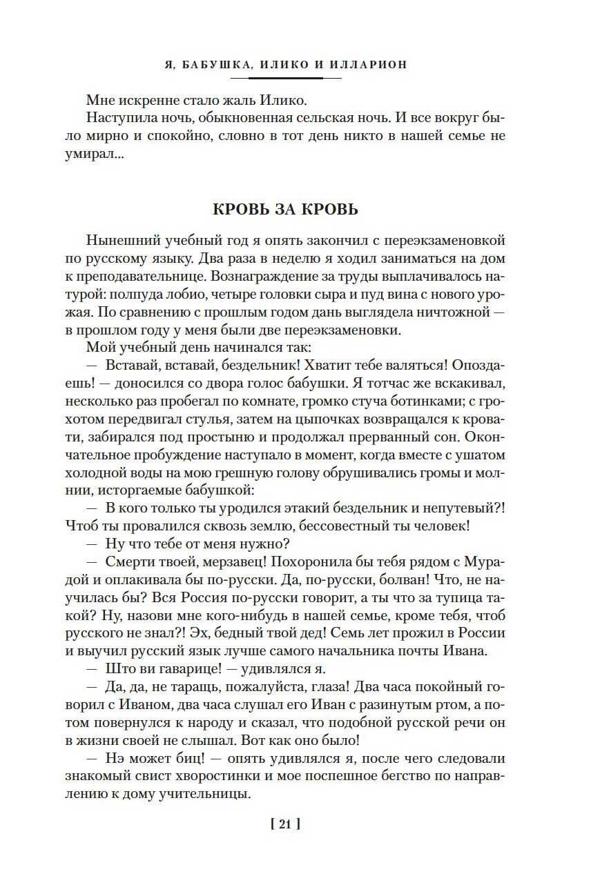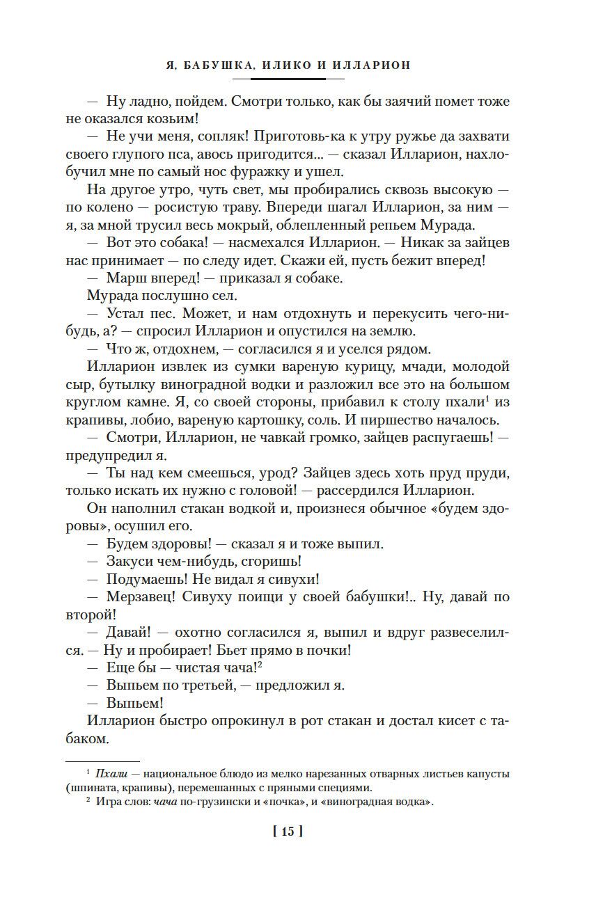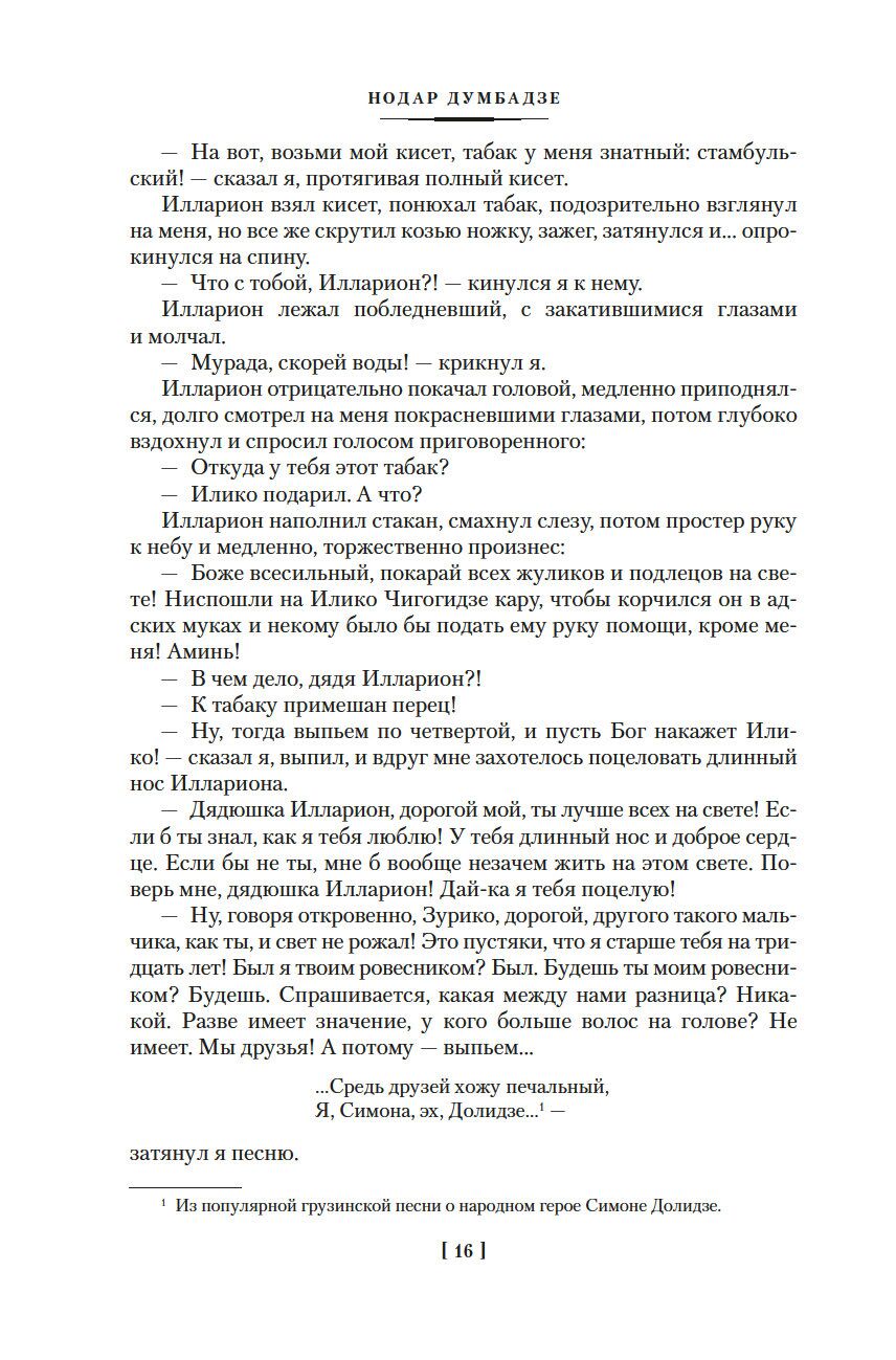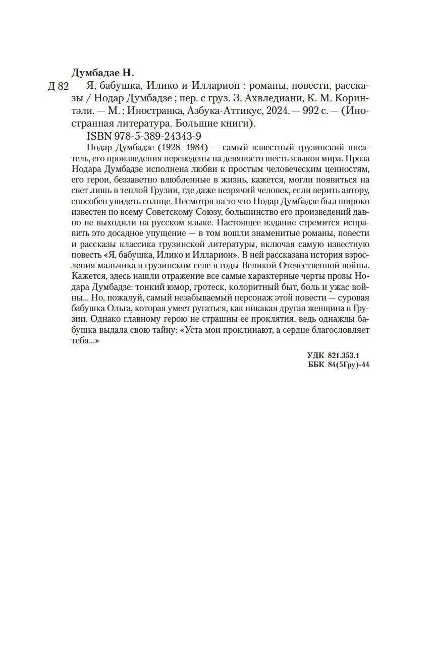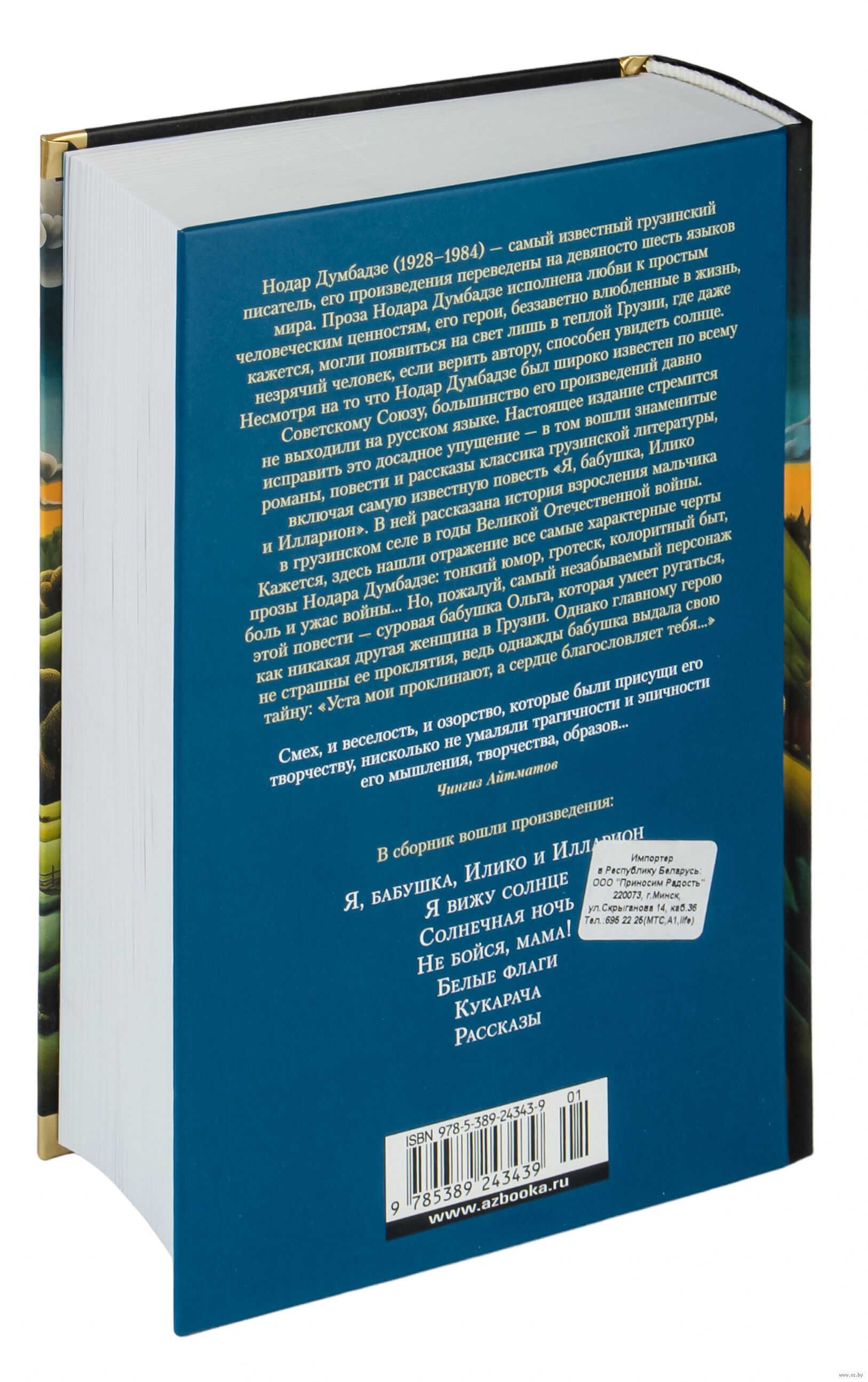 Нодар Думбадзе (1928-1984) – самый известный грузинский писатель, его произведения переведены на девяносто шесть языков мира. Проза Нодара Думбадзе исполнена любви к простым человеческим ценностям, его герои, беззаветно влюбленные в жизнь, кажется, могли появиться на свет лишь в теплой Грузии, где даже незрячий человек, если верить автору, способен увидеть солнце. Несмотря на то что Нодар Думбадзе был широко известен по всему Советскому Союзу, большинство его произведений давно не выходили на русском языке. Настоящее издание стремится исправить это досадное упущение – в том вошли знаменитые романы, повести и рассказы классика грузинской литературы, включая самую известную повесть "Я, бабушка, Илико и Илларион". В ней рассказана история взросления мальчика в грузинском селе в годы Великой Отечественной войны. Кажется, здесь нашли отражение все самые характерные черты прозы Нодара Думбадзе: тонкий юмор, гротеск, колоритный быт, боль и ужас войны... Но, пожалуй, самый незабываемый персонаж этой повести – суровая бабушка Ольга, которая умеет ругаться, как никакая другая женщина в Грузии. Однако главному герою не страшны ее проклятия, ведь однажды бабушка выдала свою тайну: "уста мои проклинают, а сердце благословляет тебя..."