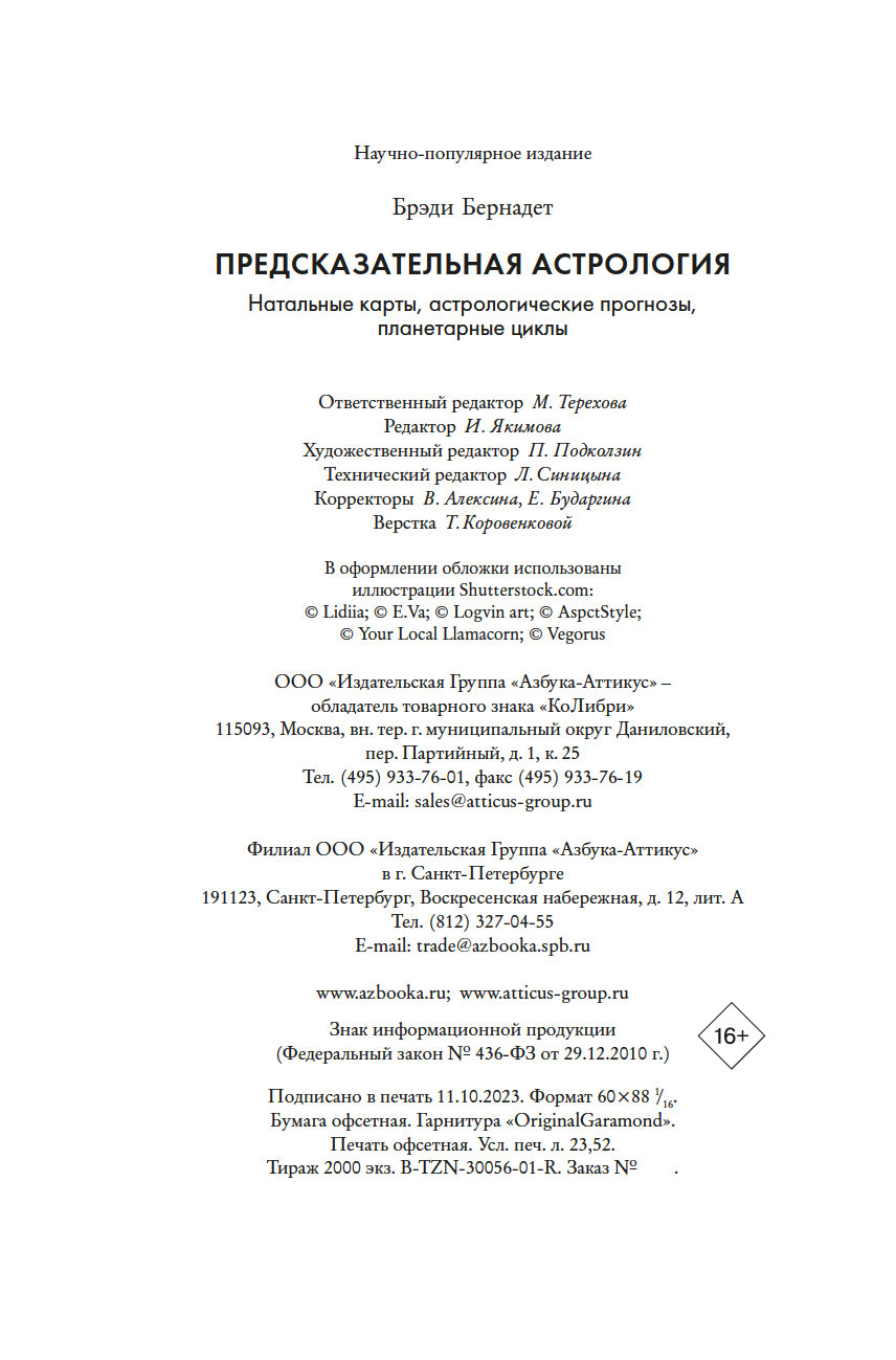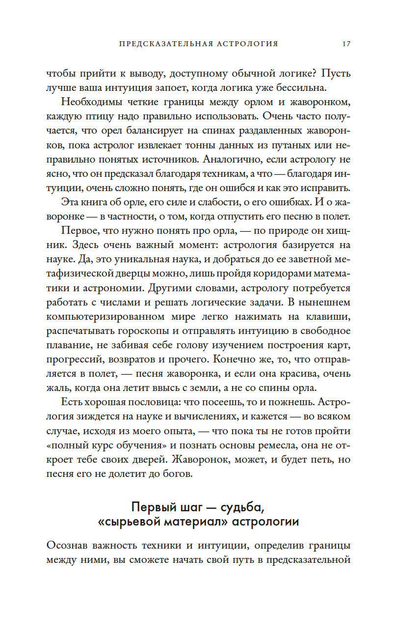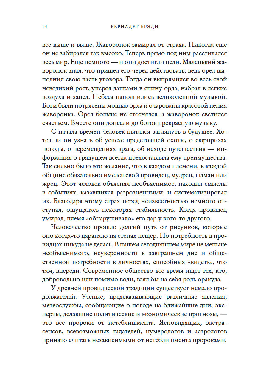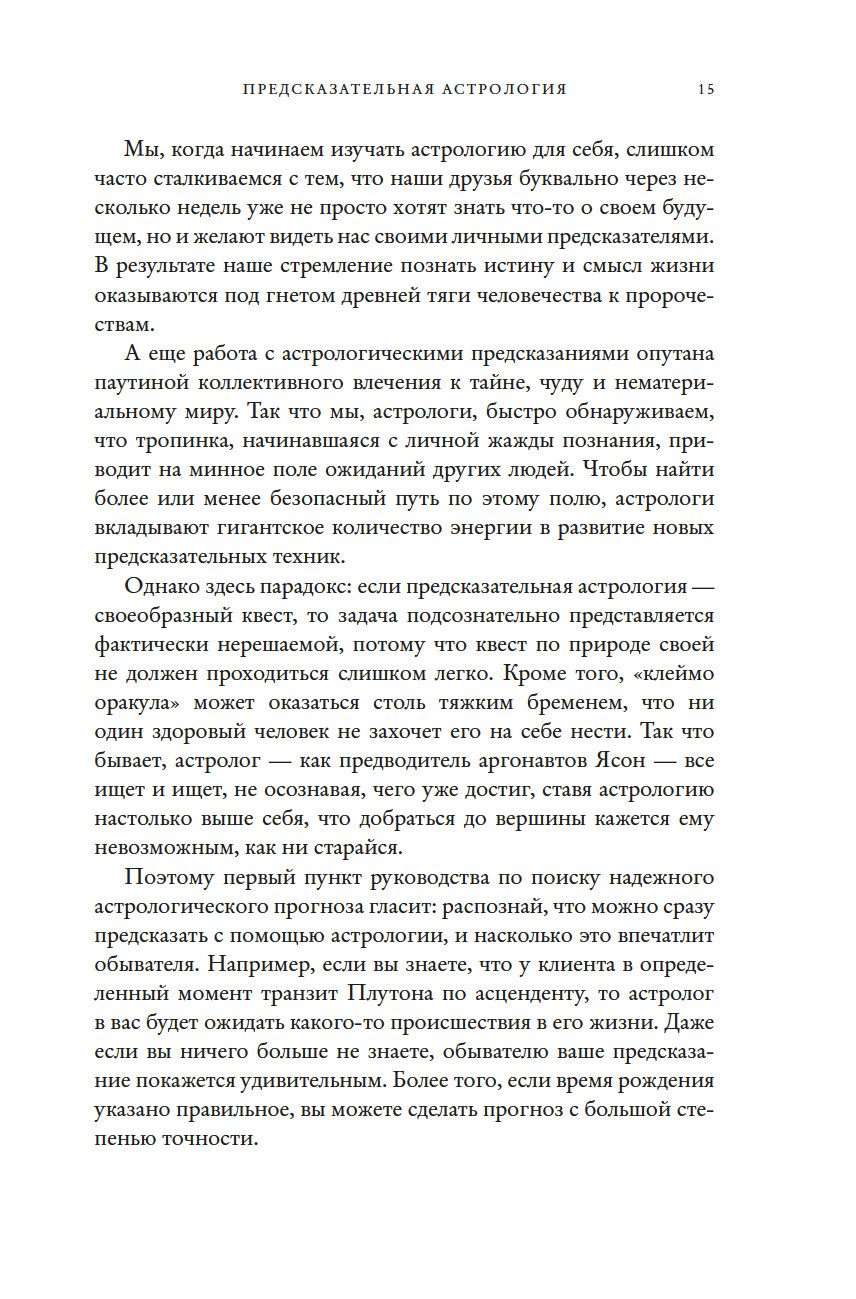 "Это неподвластный времени шедевр, который необходим любому, кто хочет расширить свои познания в этом предмете. Учиться лучше всего на практике, методом проб и ошибок, под чутким руководством хорошего учителя. Бернадет Брэди – один из лучших учителей в этой сфере. С данной книгой вы пройдете мастер-класс по пониманию того, как все устроено в предсказательной астрологии. Возможно, это поможет вам, читатель, увидеть роль судьбы в вашей жизни – и завербовать ее себе на службу. Вперед к вашему светлому будущему!" (Тереза Рид, практикующий эксперт в области карт Таро, "леди Таро")