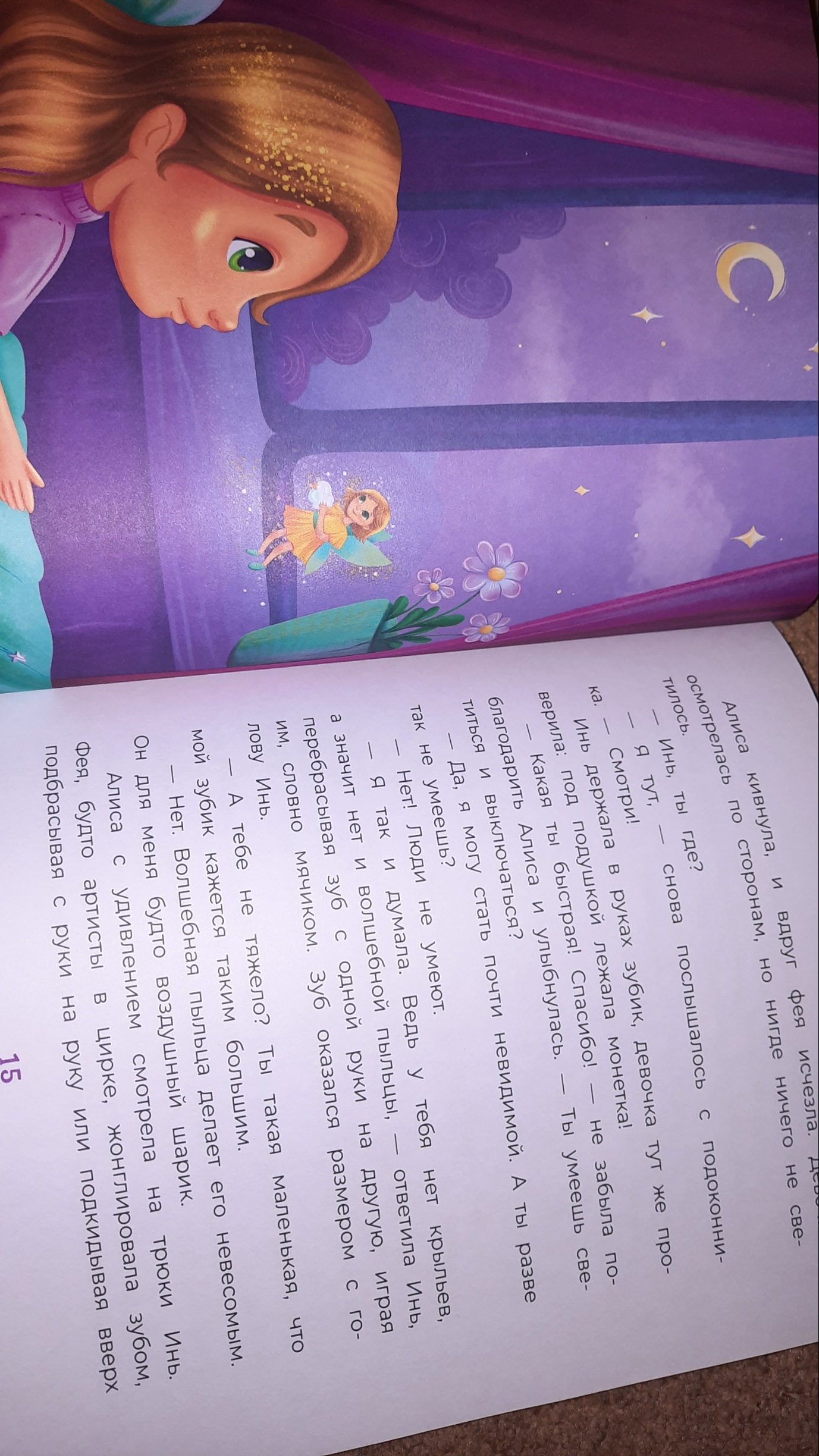 Героиня книги – любопытная и добродушная девочка Алиса. У неё вот-вот выпадет первый молочный зуб. Мама рассказывает ей про зубную фею. Возможно ли увидеть фею? И какая она? Мир вокруг полон волшебства. Алиса знакомится с совёнком Чихом, ожившими игрушечными зайчатами Блёсточкой и Печенькой, принцессой Снежинкой. А ещё она учится видеть добрые сны и мыть волосы.