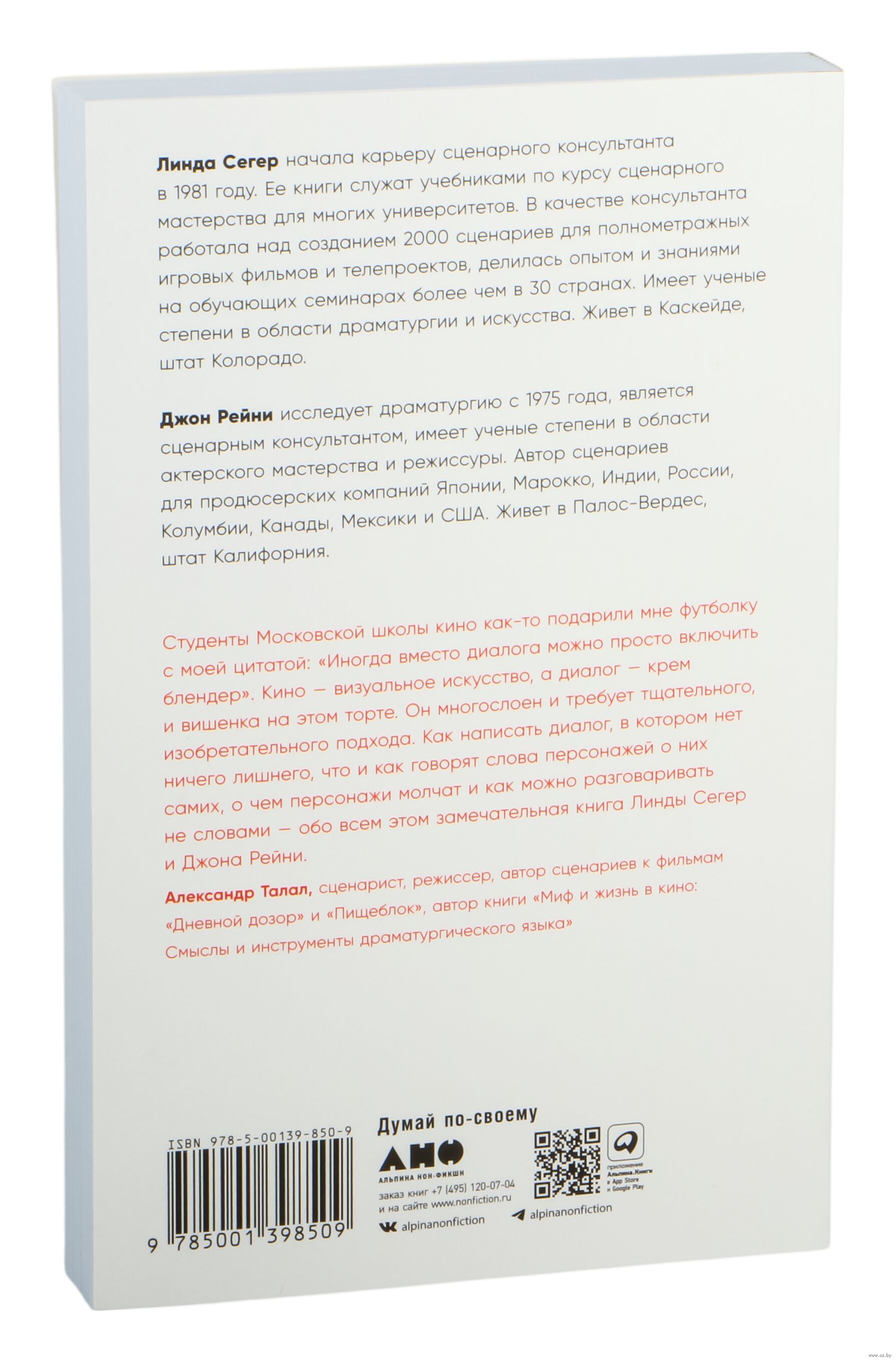 Книга Линды Сегер и Джона Рейни поможет вам избежать этих ловушек. Вы познакомитесь не только с ценными советами о том, как вложить в уста героев те самые единственные и неповторимые реплики, но и с грубыми ошибками в написании диалогов, которые сведут на нет все попытки создать героев, которым поверит зритель. Все советы сопровождаются показательными примерами из пьес, экранизаций и кинофильмов. Книга будет интересна авторам, работающим в любом жанре, и независимо от уровня мастерства – как новичкам, так и опытным профессионалам.