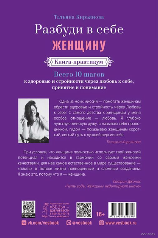 Книга-практикум „Разбуди в себе Женщину" – это первая ступень к долгой и счастливой жизни. Ты познакомишься со своим телом, приведешь его в порядок, научишься слышать и любить себя по-настоящему. Я помогу тебе узнать, какое ты чудо, насколько ты уникальна и как безграничны твои возможности. Я помогу тебе прийти к лучшей версии именно тебя, потому что ты такая одна!"