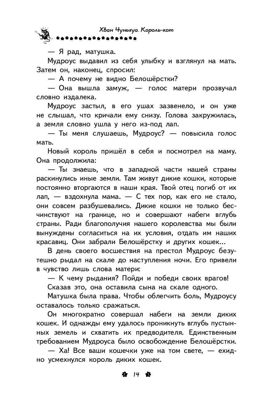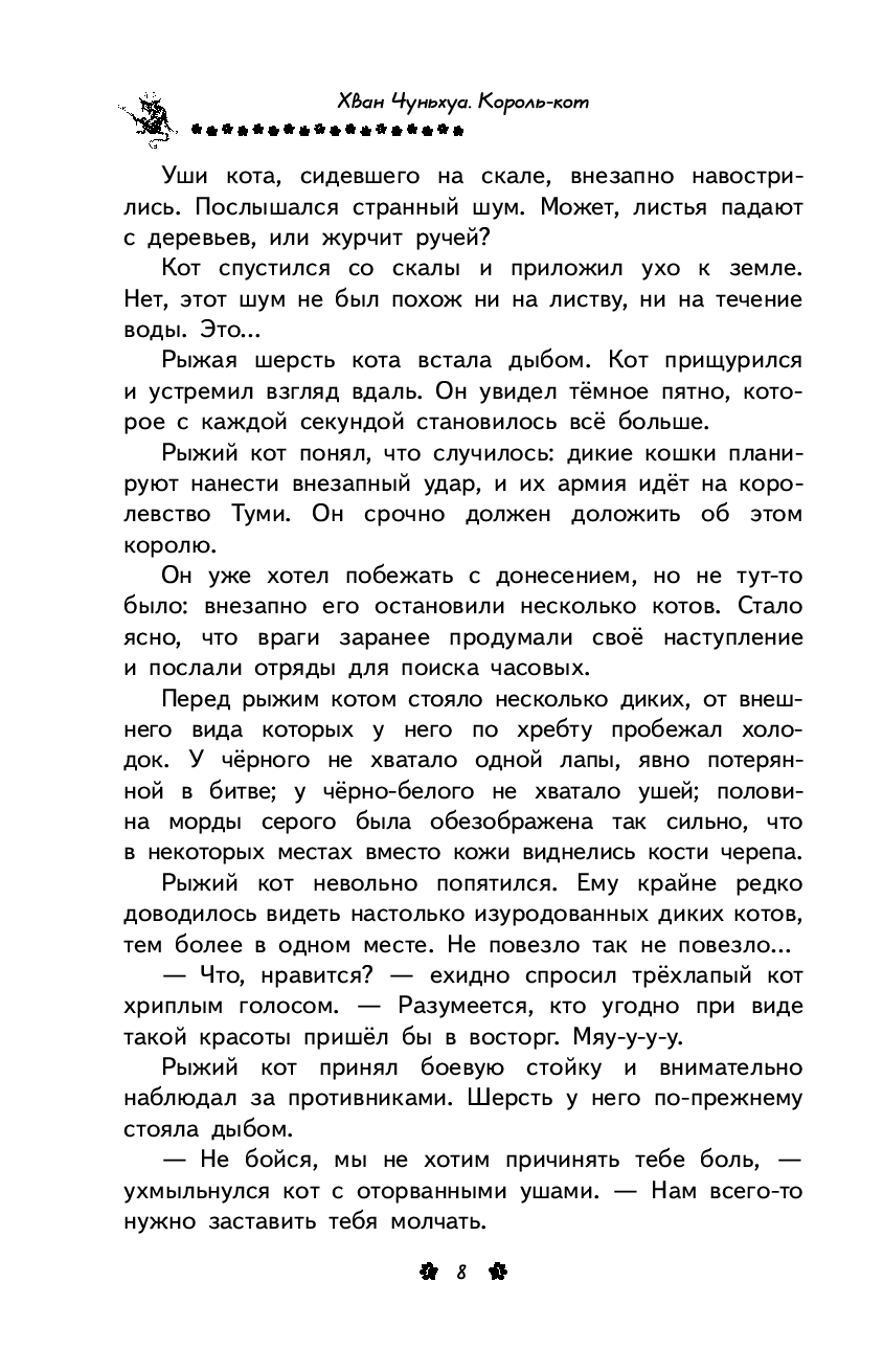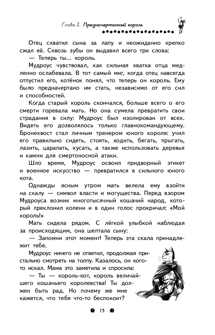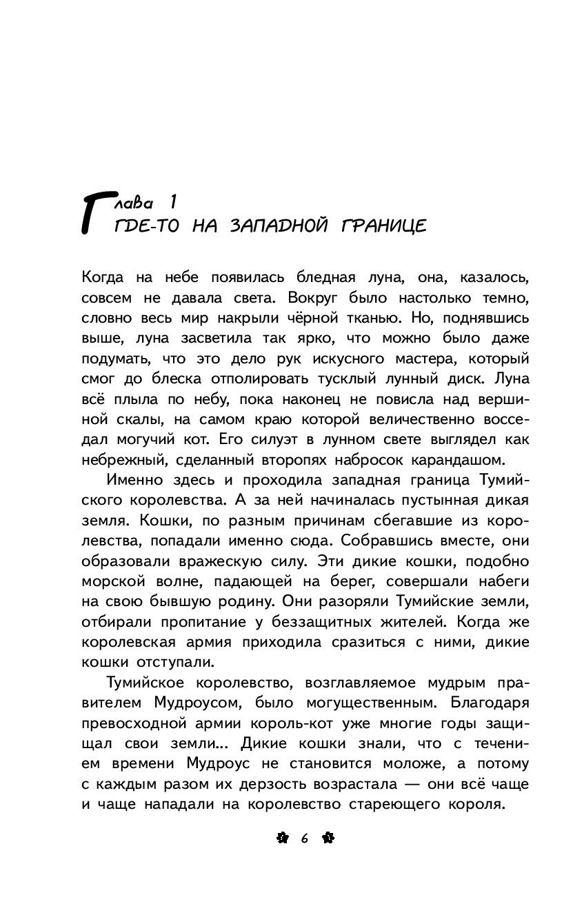 На королевство Туми уже много лет совершают набеги дикие коты. Изгнанные из дома за коварство и жестокость, они полны решимости отомстить и свергнуть с престола старого короля-кота Мудроуса. Сыновья короля Белохвост и Чернохвост готовы по-разному сражаться за судьбу своей родины. Но чьи поступки и решения окажутся верными? Кто закончит многолетнюю войну? И кто может стать новым Королем-котом?