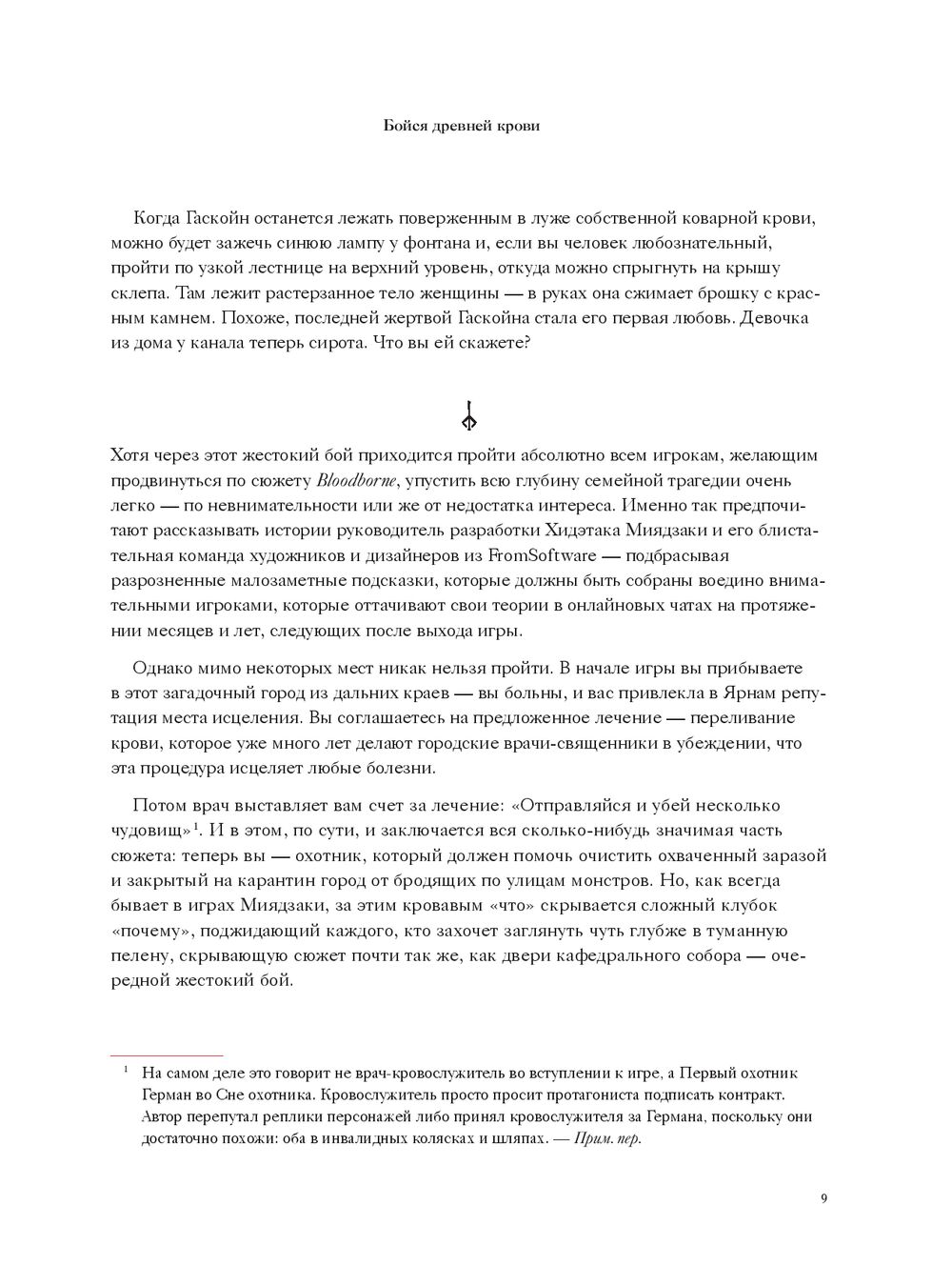 Bloodborne – это игра в жанре action RPG, разработанная компанией FromSoftware. Она быстро завоевала репутацию одной из лучших игр и любовь миллионов игроков. Действие Bloodborne происходит в городе Ярнам, жители которого страдают от загадочного заболевания, превращающего людей в чудовищ. Игрок примеряет на себя роль охотника, который должен пройти через город и раскрыть его тайны, сражаясь с ордами монстров. Перед вами уникальный сборник, где вы найдете множество красочных иллюстраций и эссе, которые с самых разных сторон исследуют мир, темы и идеи Bloodborne, а также ее культурное наследие. Книга включает интервью с создателем Bloodborne Хидэтакой Миядзаки, которое ранее было опубликовано только один раз, а также эссе от композитора игры, переводчика игры с японского на английский, известного спидранера и многих других людей, которых вдохновила игра.