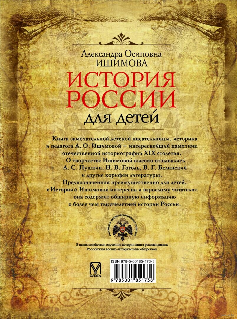 Предназначенная преимущественно для детей, "История" Ишимовой интересна и взрослому читателю: она содержит обширную информацию о более чем тысячелетней истории России.