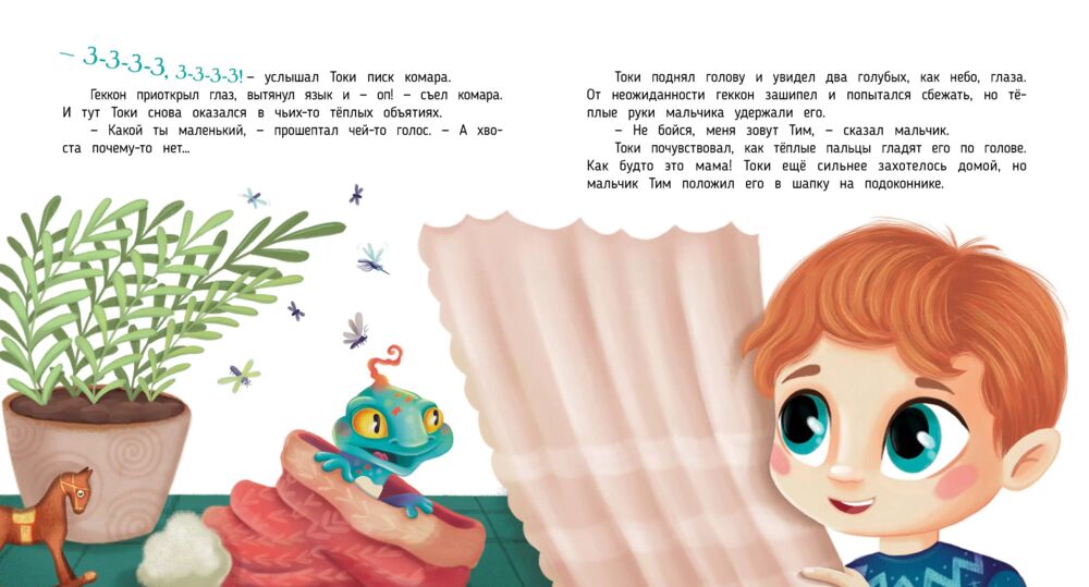 Однажды Токи похитил филин. Геккон вынужден был сбросить хвост, чтобы выжить. Так Токи оказался далеко от дома, совсем один... И без хвоста! Что же делать? Читайте историю, и узнаете, сможет ли малыш победить свои страхи и неуверенность, найти друзей и вернуться к родным.