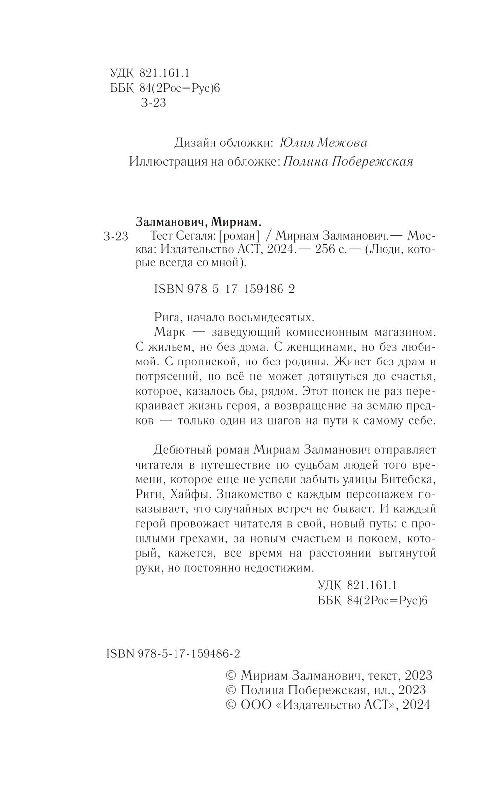 Дебютный роман Мириам Залманович отправляет читателя в путешествие по судьбам людей того времени, которое еще не успели забыть улицы Витебска, Риги, Хайфы. Знакомство с каждым персонажем показывает, что случайных встреч не бывает. И каждый герой провожает читателя в свой, новый путь: с прошлыми грехами, за новым счастьем и покоем, который, кажется, все время на расстоянии вытянутой руки, но постоянно недостижим.