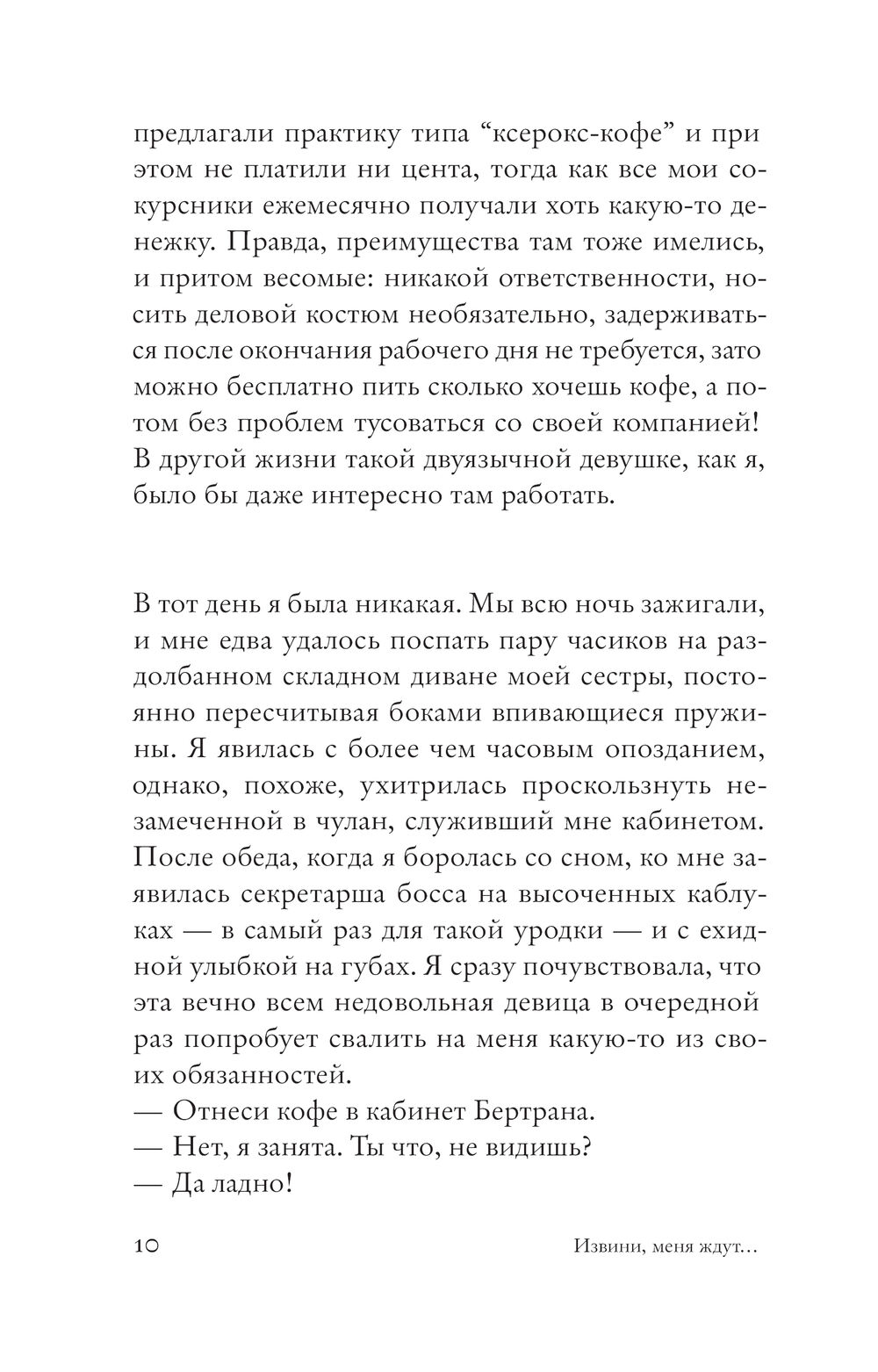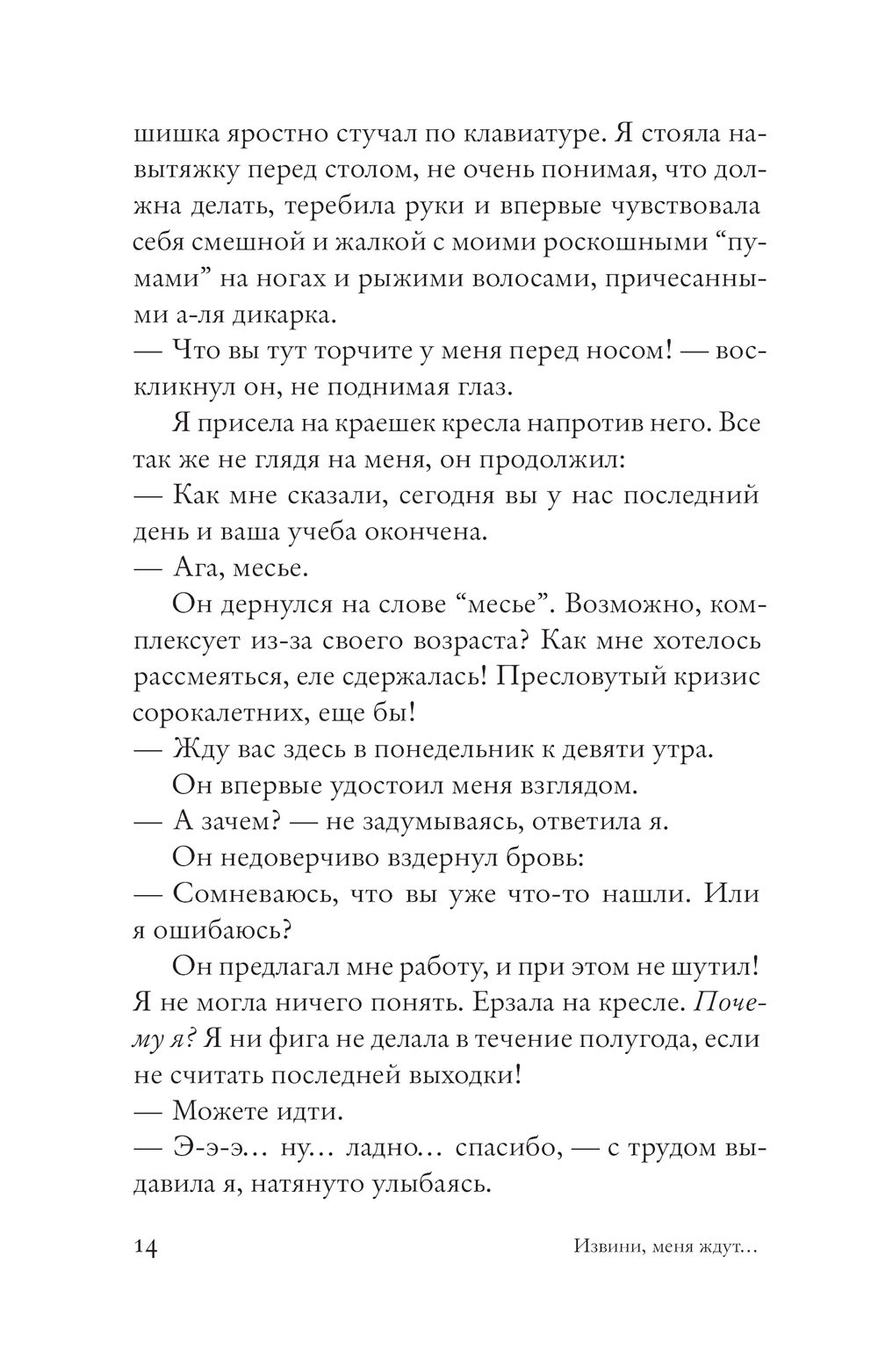 "Извини, меня ждут..." – уже четвертый роман о любви, написанный блестящей молодой француженкой Аньес Мартен-Люган. Известность ей принес в 2013 году бестселлер "Счастливые люди читают книжки и пьют кофе", за которым последовали еще два – "У тебя все получится, дорогая моя" и "Влюбленные в книги не спят в одиночестве". В мире продано больше миллиона ее книг.