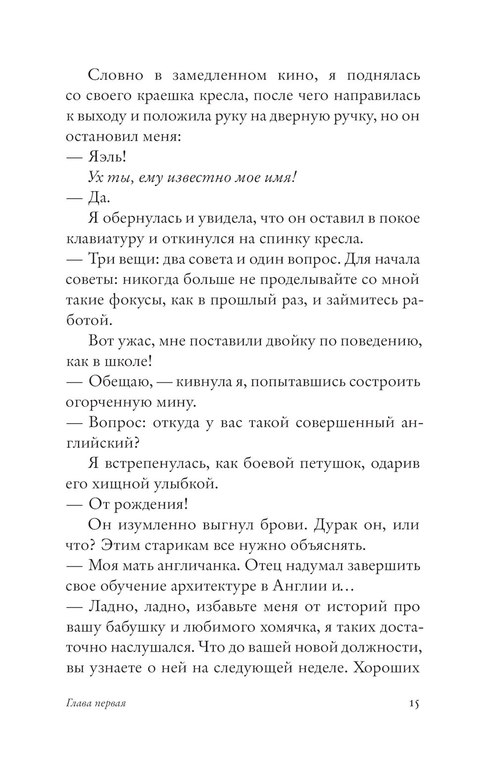 Амбициозная переводчица Яэль жертвует ради карьеры всем – личной жизнью, семьей, развлечениями – и не замечает, как она одинока. Когда‑то Яэль была веселой, беззаботной студенткой, всегда окруженной друзьями. Теперь, когда ей за тридцать, она даже запрещает себе слушать музыку, чтобы не пробуждать бесполезных эмоций. Однако вопреки ее воле все меняется, когда она случайно встречает друга юности, исчезнувшего из ее жизни много лет назад.