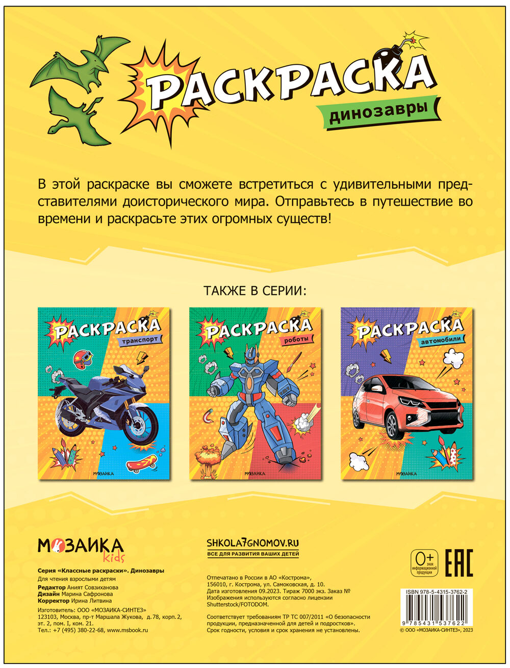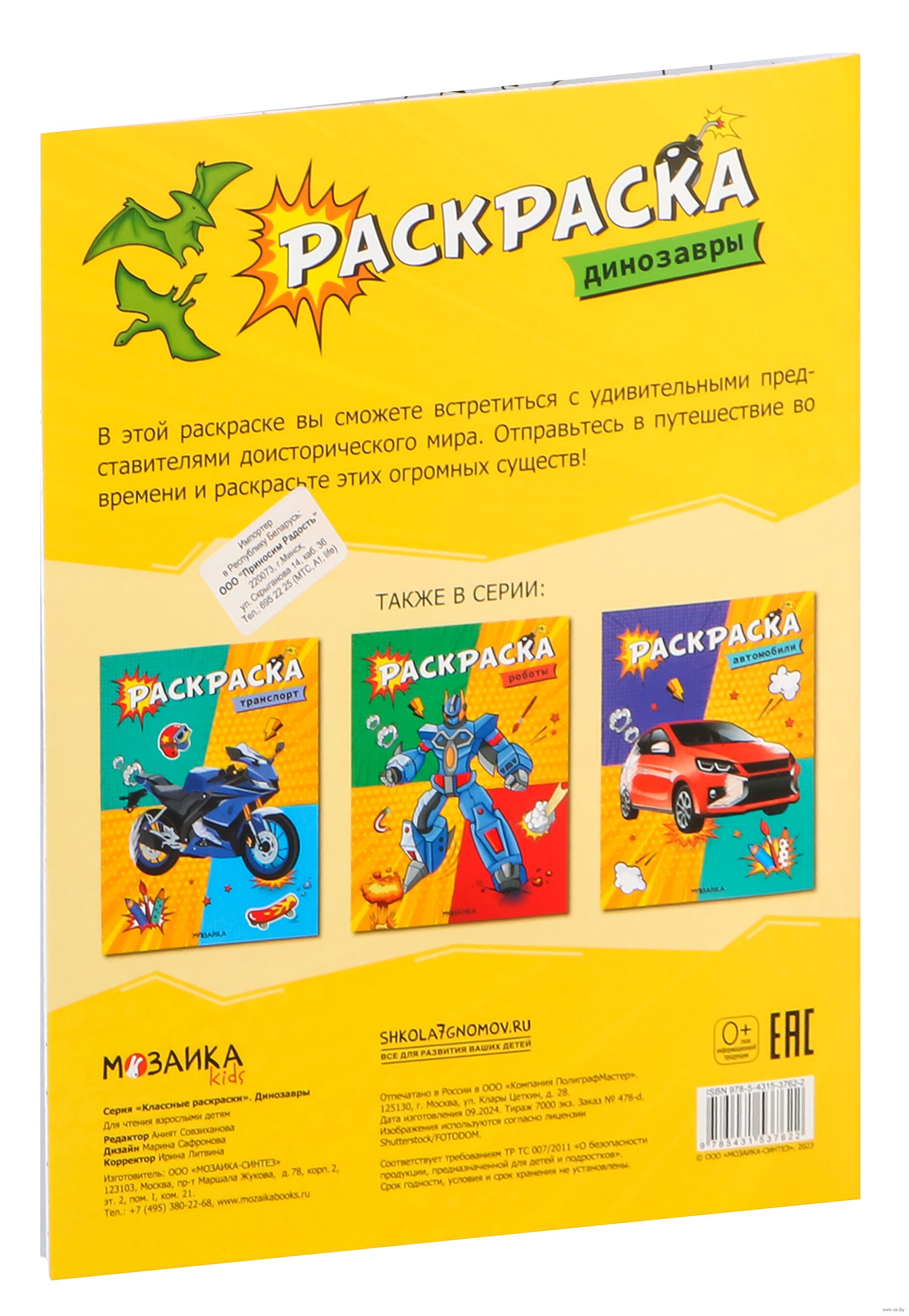 Книга "Динозавры" серии "Классные раскраски" – захватывающее путешествие в доисторические времена для детей от 5 лет. Ребенок сможет оживить тираннозавров, стегозавров, трицератопсов и других древних существ.