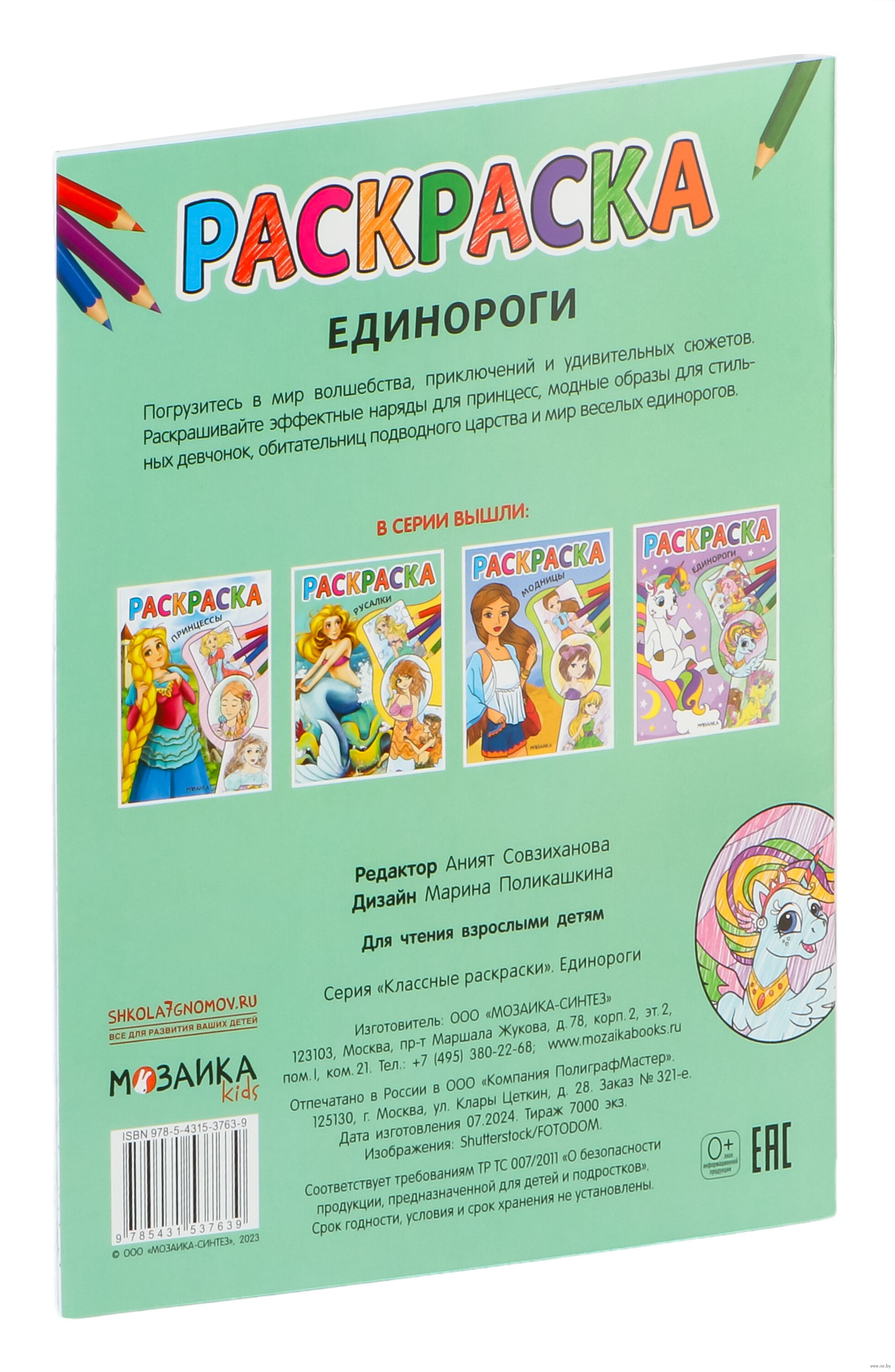 Книга "Единороги" серии "Классные раскраски" – волшебное путешествие в мир чудес для детей от 5 лет. Ребенок сможет раскрасить изящные гривы и хвосты единорогов, исследовать загадочные леса и волшебные миры.