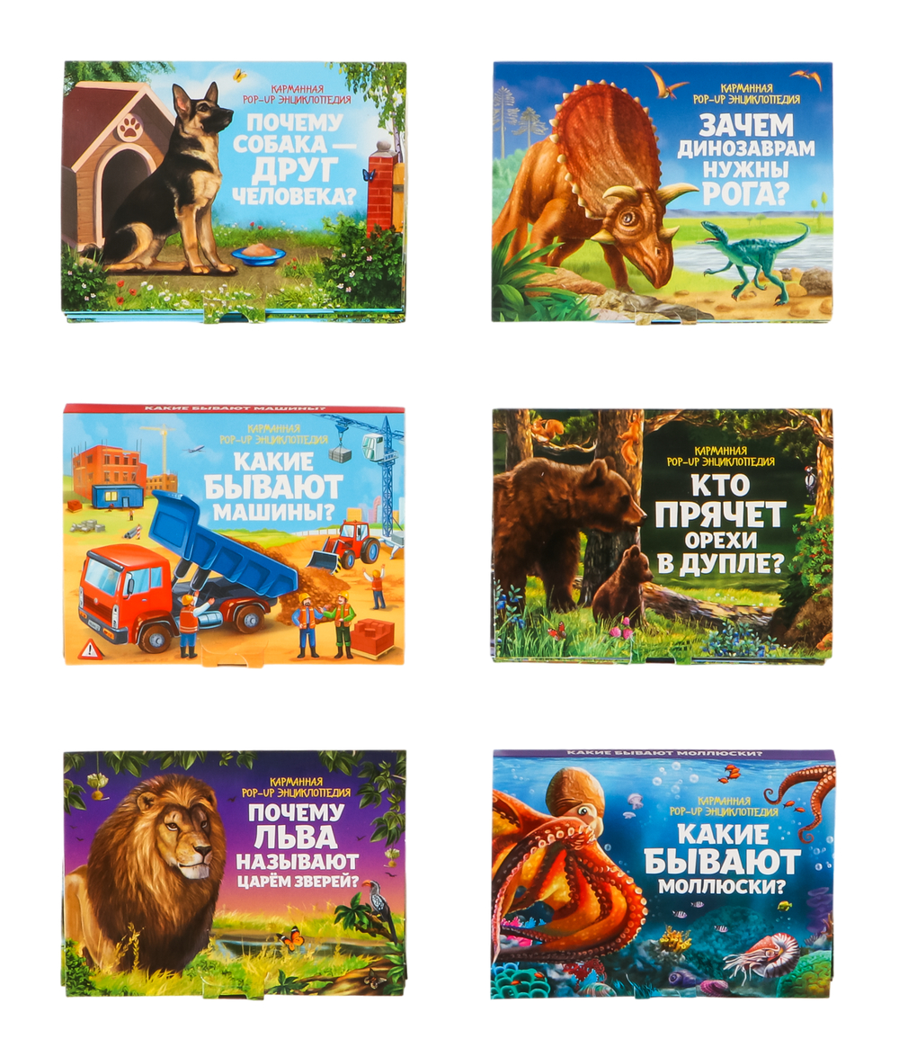Коллекция карманных POP-UP энциклопедий – это 6 книг с интересными фактами обо всём на свете. Ребёнок узнает много нового, а яркие иллюстрации перенесут его в мир удивительных открытий.