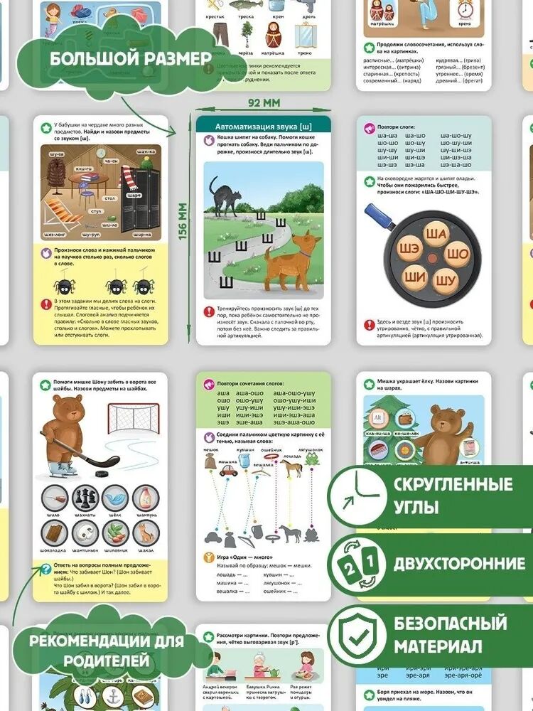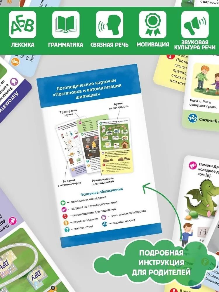 Это умные карточки, которые помогут вашему малышу стать настоящим вундеркиндом с пелёнок. Карточки разбиты на наборы по темам, которые направлены на постановку и автоматизацию звуков, предлагают различные упражнения для артикуляционной гимнастики, способствуют запуску речи. Это логопедическое пособие адресовано логопедам, дефектологам, родителям. Оно может также стать отличным подарком и малышу ваших друзей, и для группы в детском саду.