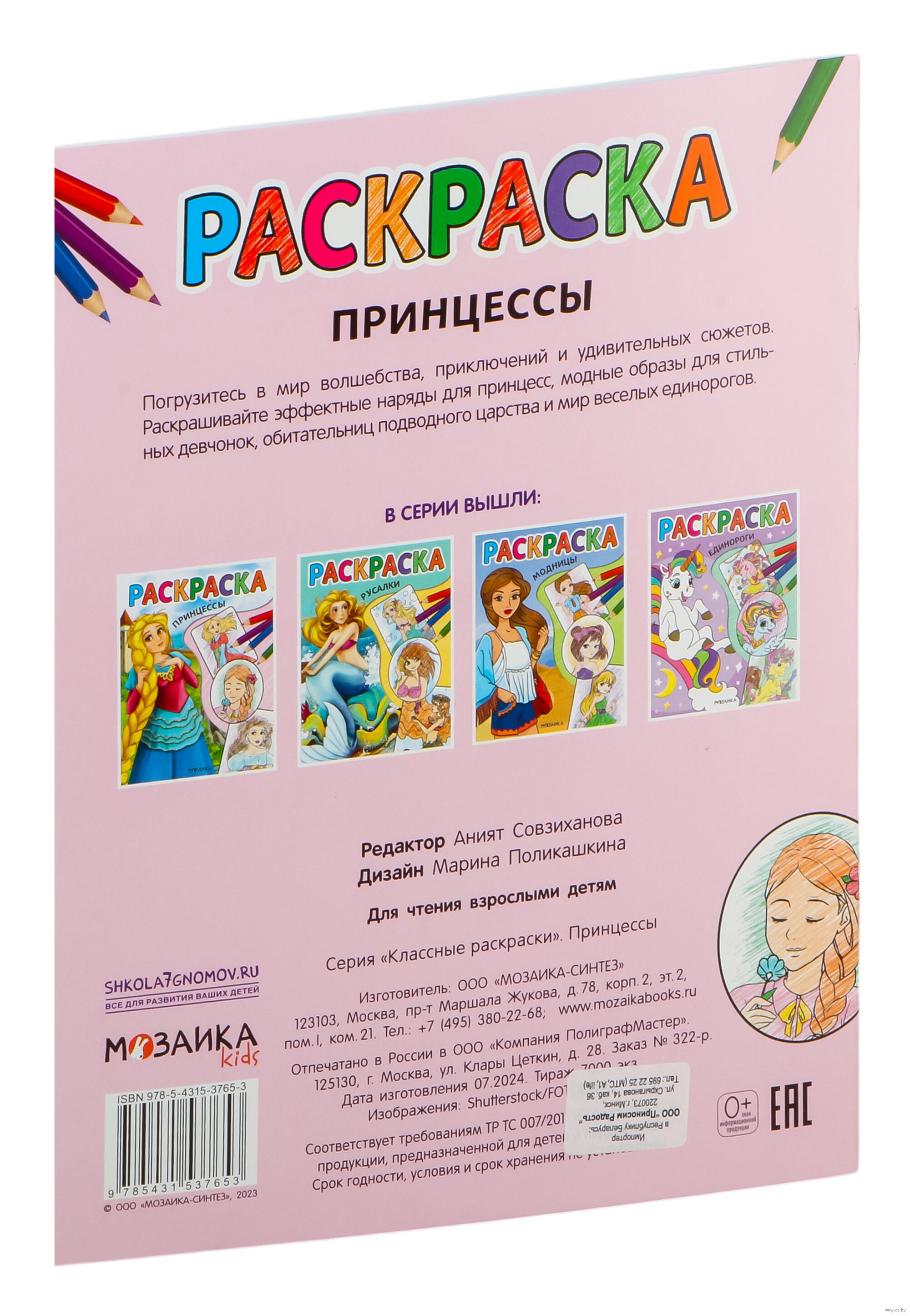 Книга "Принцессы" серии "Классные раскраски" – путешествие в сказочное королевство для детей от 5 лет. На каждой странице ребенка ждут прекрасные дамы в великолепных нарядах.
