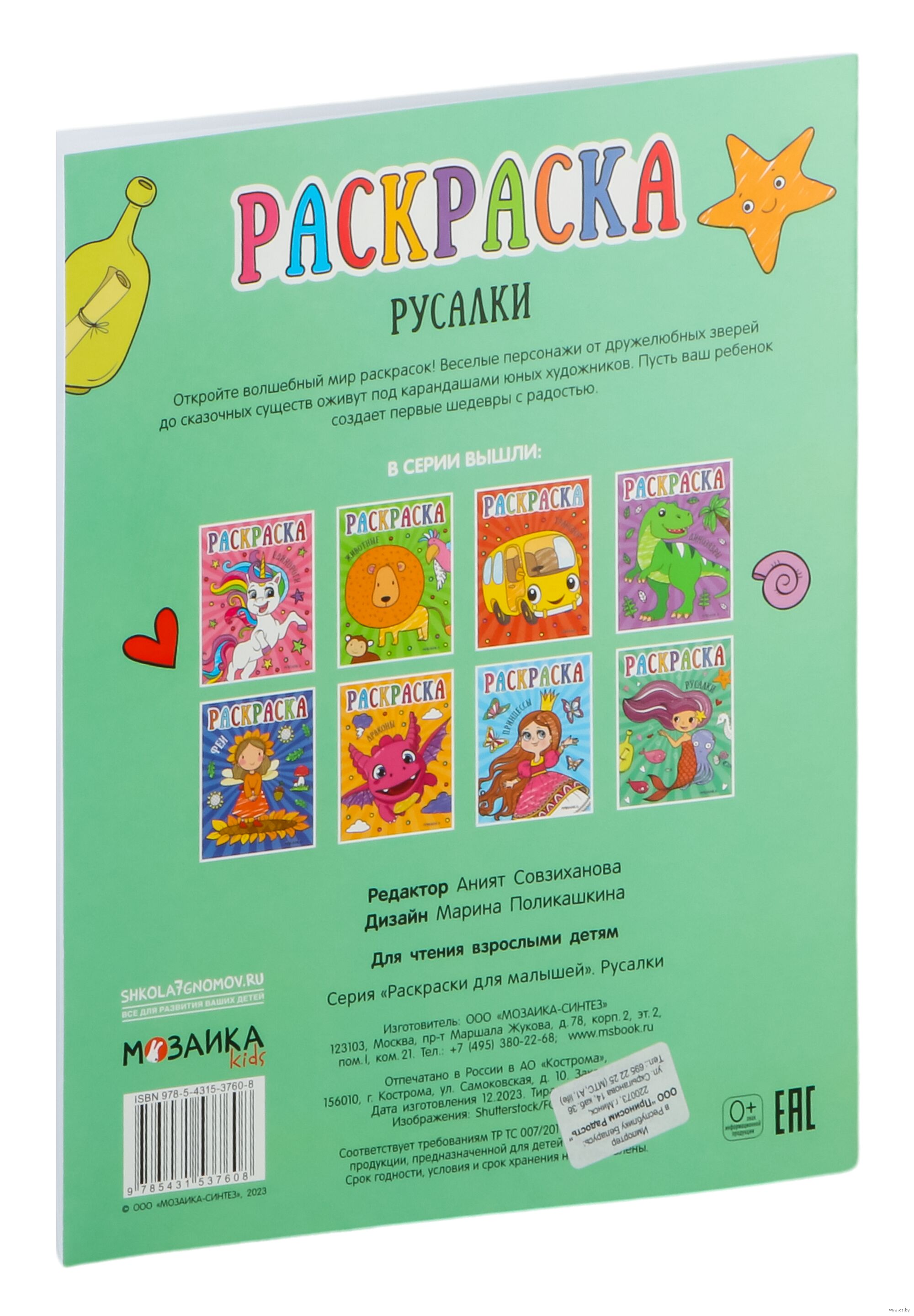 Книга "Русалки" серии "Раскраски для малышей" захватывающее приключение в глубинах океана. На страницах ребенок найдет изящных подводных жительниц и сможет погрузиться в мир фантазий.