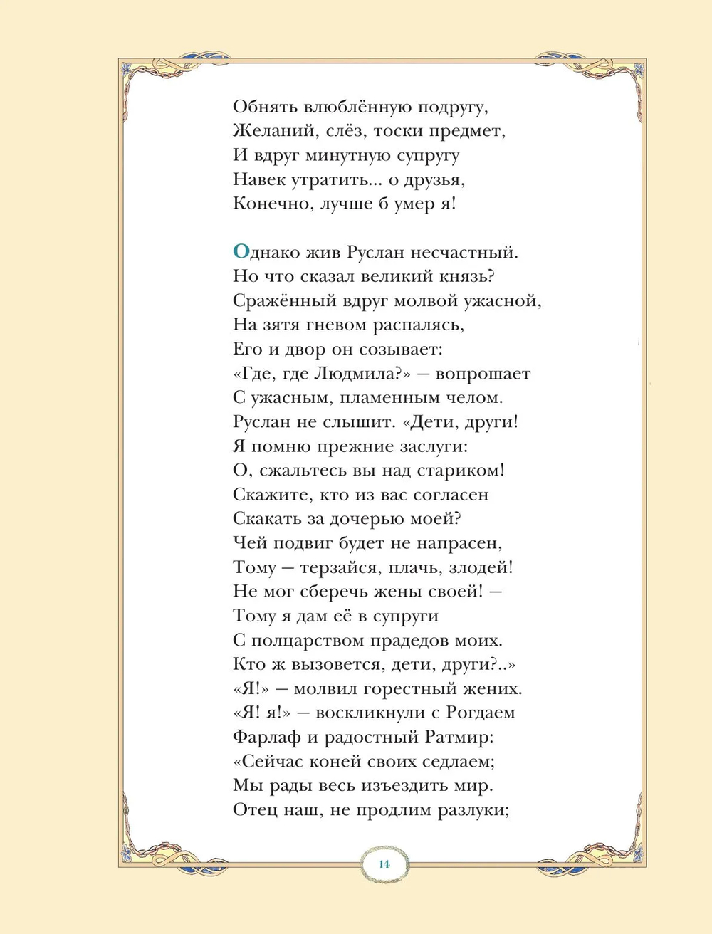 "Руслан и Людмила" – первая завершённая поэма А. С. Пушкина, вдохновлённая славянскими былинами. В книге мы встретим могучих богатырей и всесильных чародеев, вместе с героями отправимся в неизведанные страны и спасём из заточения прекрасную княжну. Волшебную атмосферу древнерусских преданий великолепно передают стильные иллюстрации известного художника Виктора Королькова. Они были созданы для юбилейного издания к 200-летию великого поэта и отмечены Пушкинской премией.