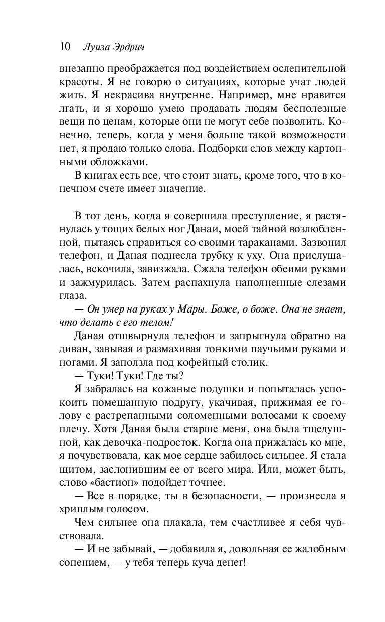 Перед вами загадочный, наполненный магией роман, как и многие книги Эрдрич, не лишенный глубины и эмоциональности – о проживании горя, материнстве и несправедливой судьбе.