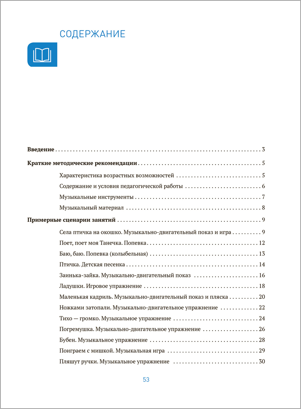 Музыкальный материал включает слушание музыки, песни, музыкально-двигательный показ, пляски и игры. В конце книги есть подраздел "На заметку музыкальному руководителю", в котором рассмотрены часто встречающиеся в работе ошибки.