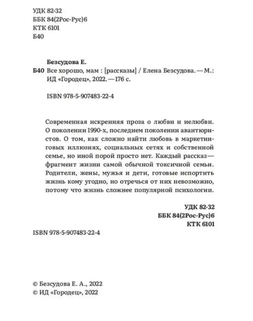 Каждый рассказ – фрагмент жизни самой обычной токсичной семьи. Родители, жены, мужья и дети, готовые испортить жизнь кому угодно, но отречься от них невозможно, потому что жизнь сложнее популярной психологии.