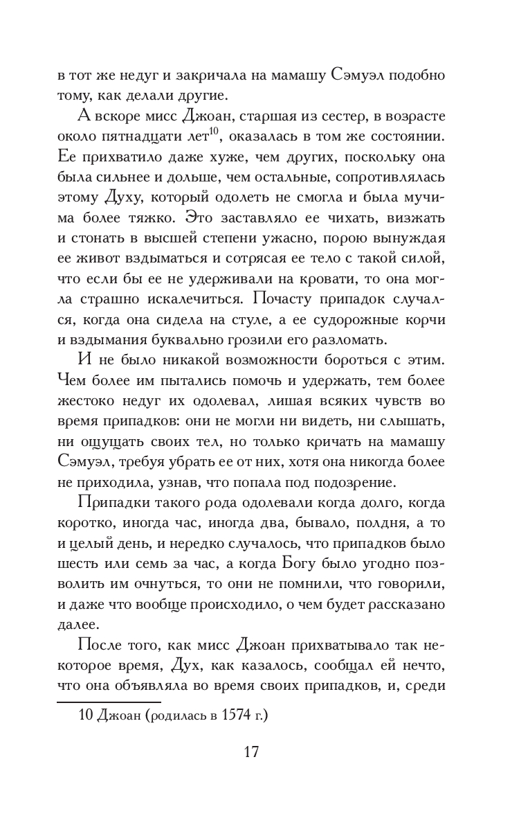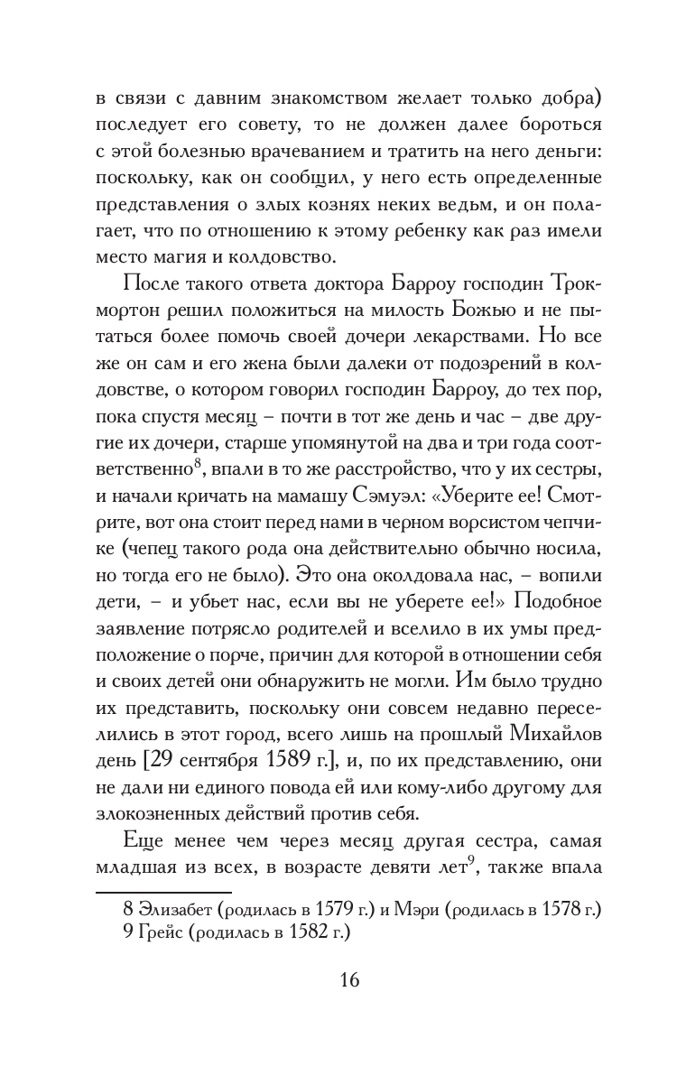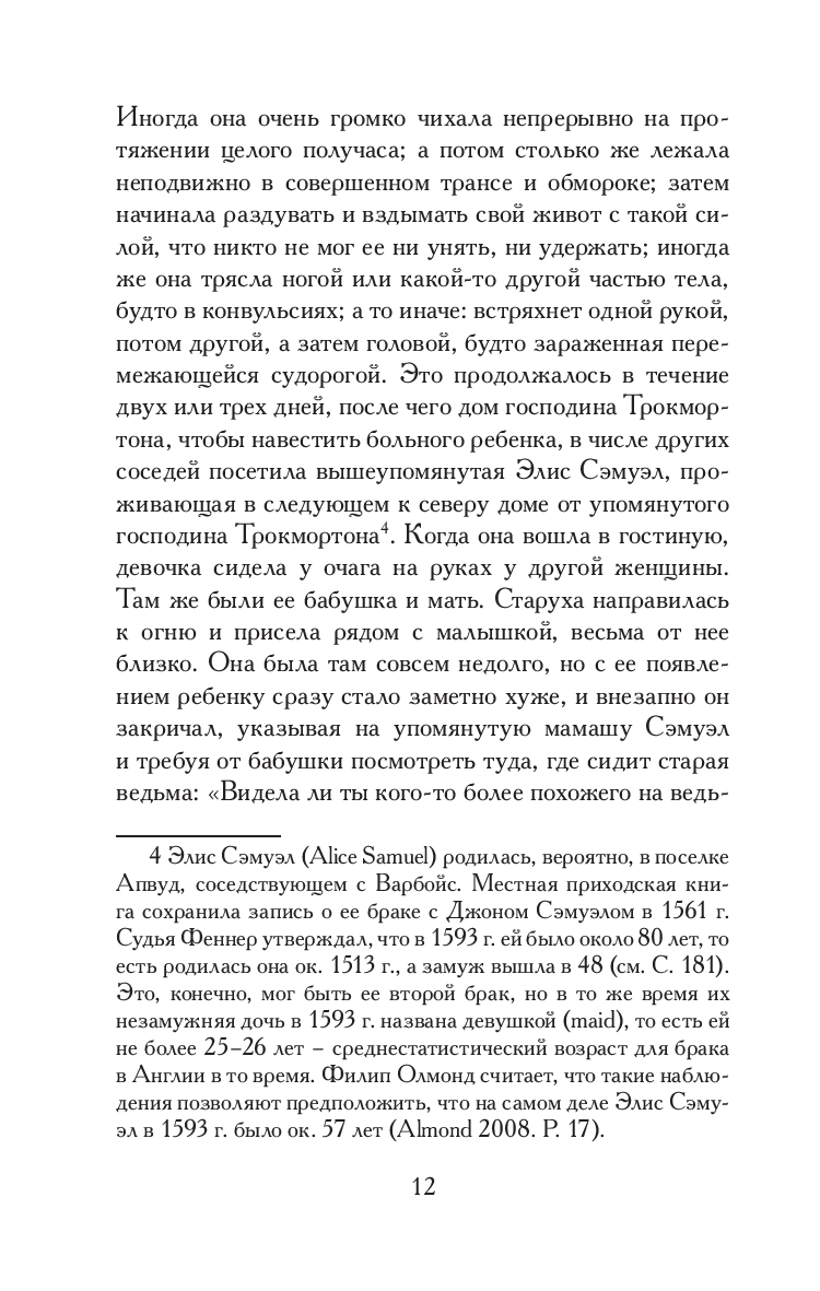 Книга написана по горячим следам судебного процесса 1593 года над двумя женщинами, обвиненными в колдовстве, и призвана убедить современников в справедливости предъявленных обвинений. Это детальный отчет о так называемом "деле варбойских ведьм", начинающийся с первых подозрений, вызванных капризом девятилетней девочки, и окончившийся казнью через повешение. Подробность и точность описания симптомов на многие годы превратила эту книгу в учебник по имитации одержимости. Настоящее издание снабжено обширным комментарием и послесловием переводчика. Автор предлагает читателю подробный рассказ о предпосылках и последствиях "охоты на ведьм", о других значительных процессах того времени, о "благородных" авторах навета и его несчастных жертвах.