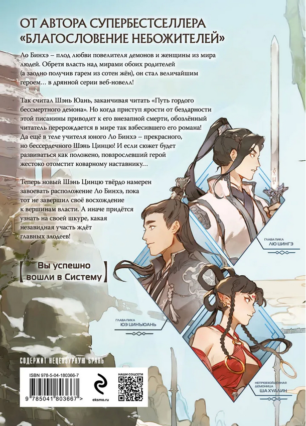 Так считал Шэнь Юань, заканчивая читать последнюю главу "Пути гордого бессмертного демона". Но когда приступ ярости от бездарности этой писанины приводит к его внезапной смерти, обозленный читатель перерождается в мире так взбесившего его романа! Да ещё в теле учителя юного Ло Бинхэ – прекрасного, но жестокого Шэнь Цинцю! Он очень силён, но если сюжет будет развиваться как положено, однажды коварного наставника постигнет ужасная кара за козни, учиненные маленькому герою...