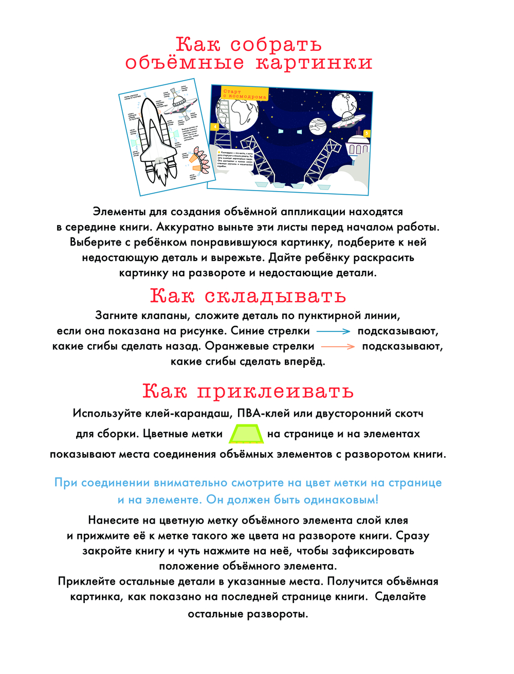 Книга "Космическое путешествие" новой серии "Объемные раскраски" содержит 6 листов с деталями для объемных аппликаций.