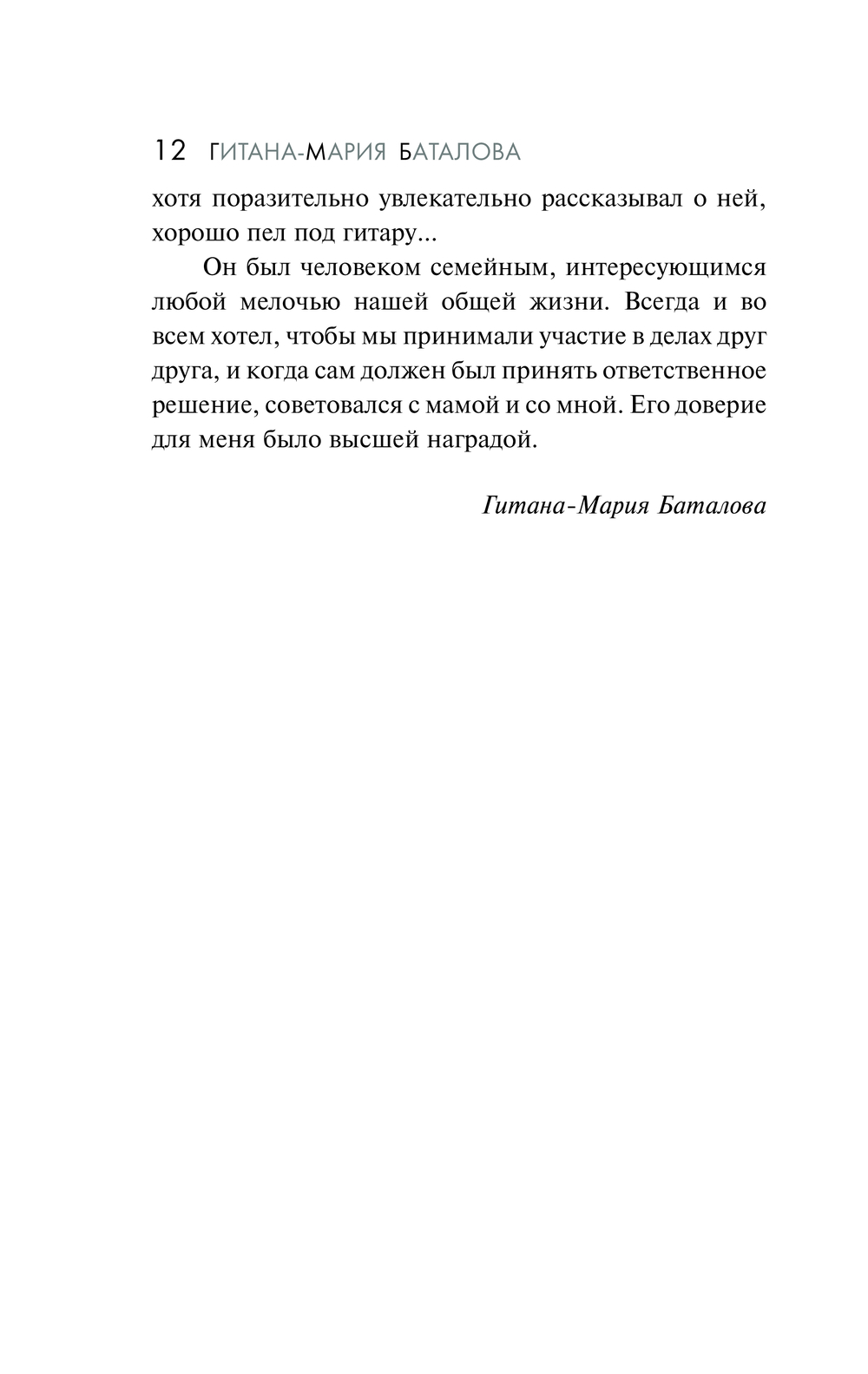 Книгу актера органично дополняют предисловие и рассказы его дочери, Гитаны-Марии Баталовой.