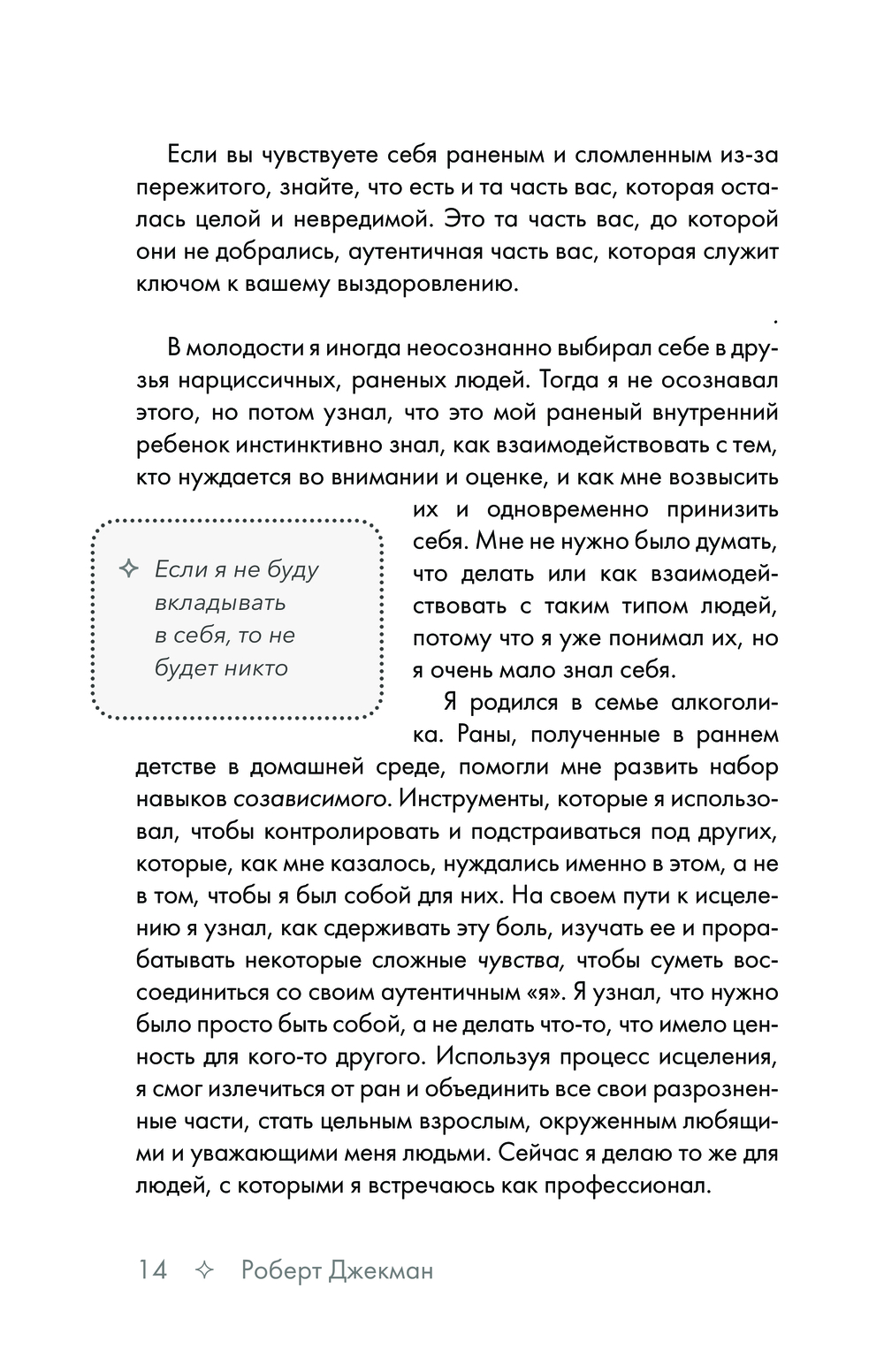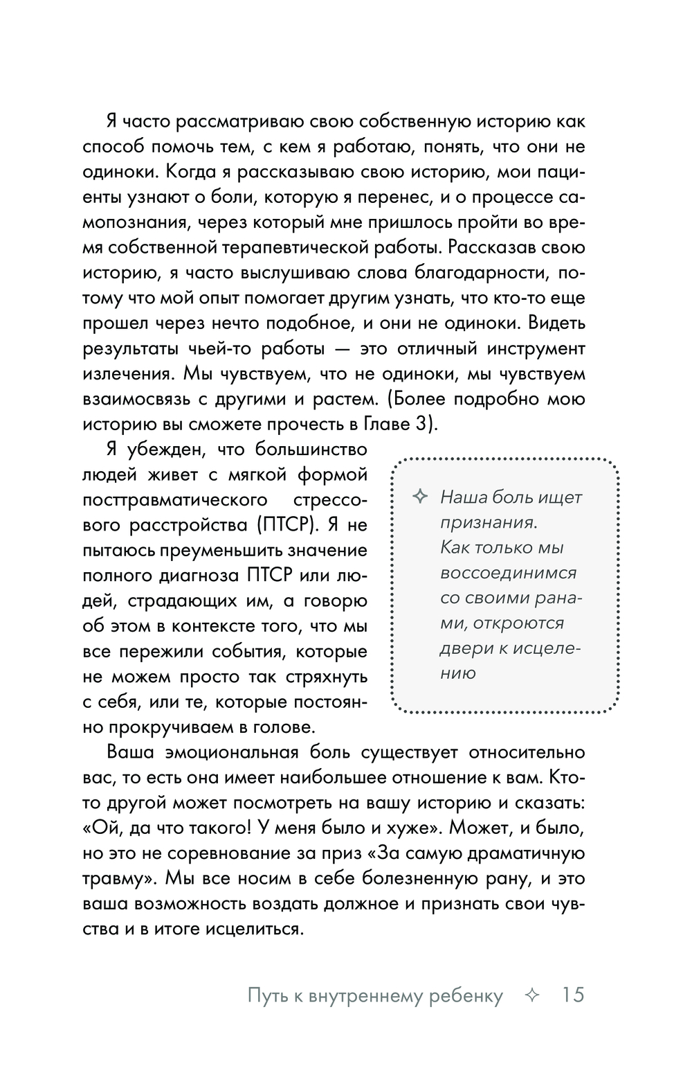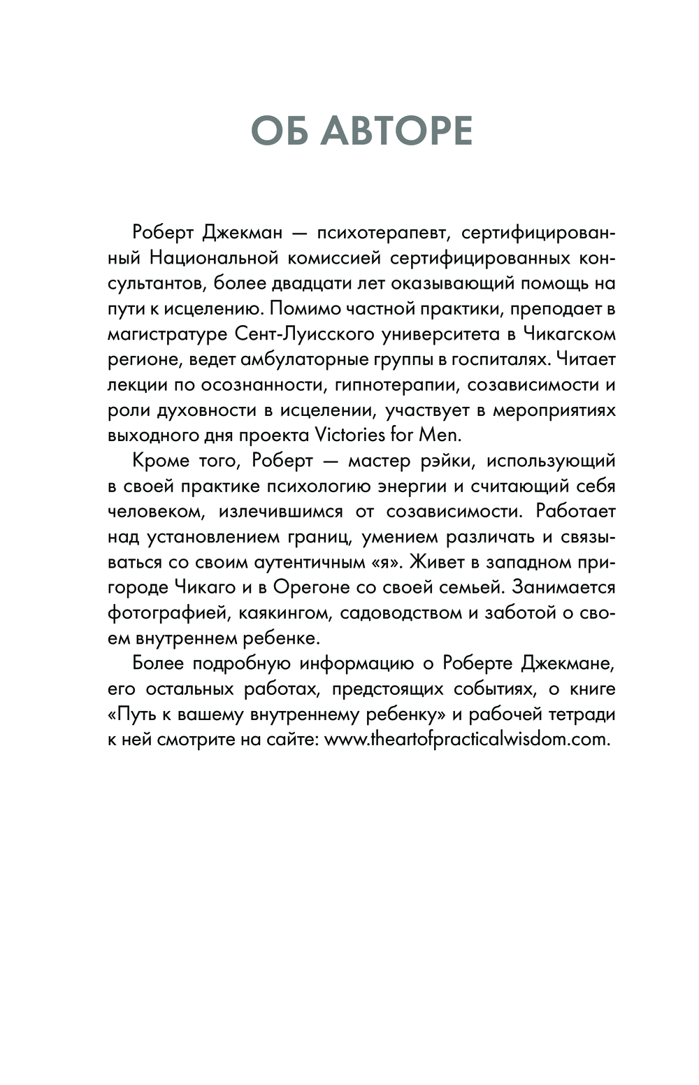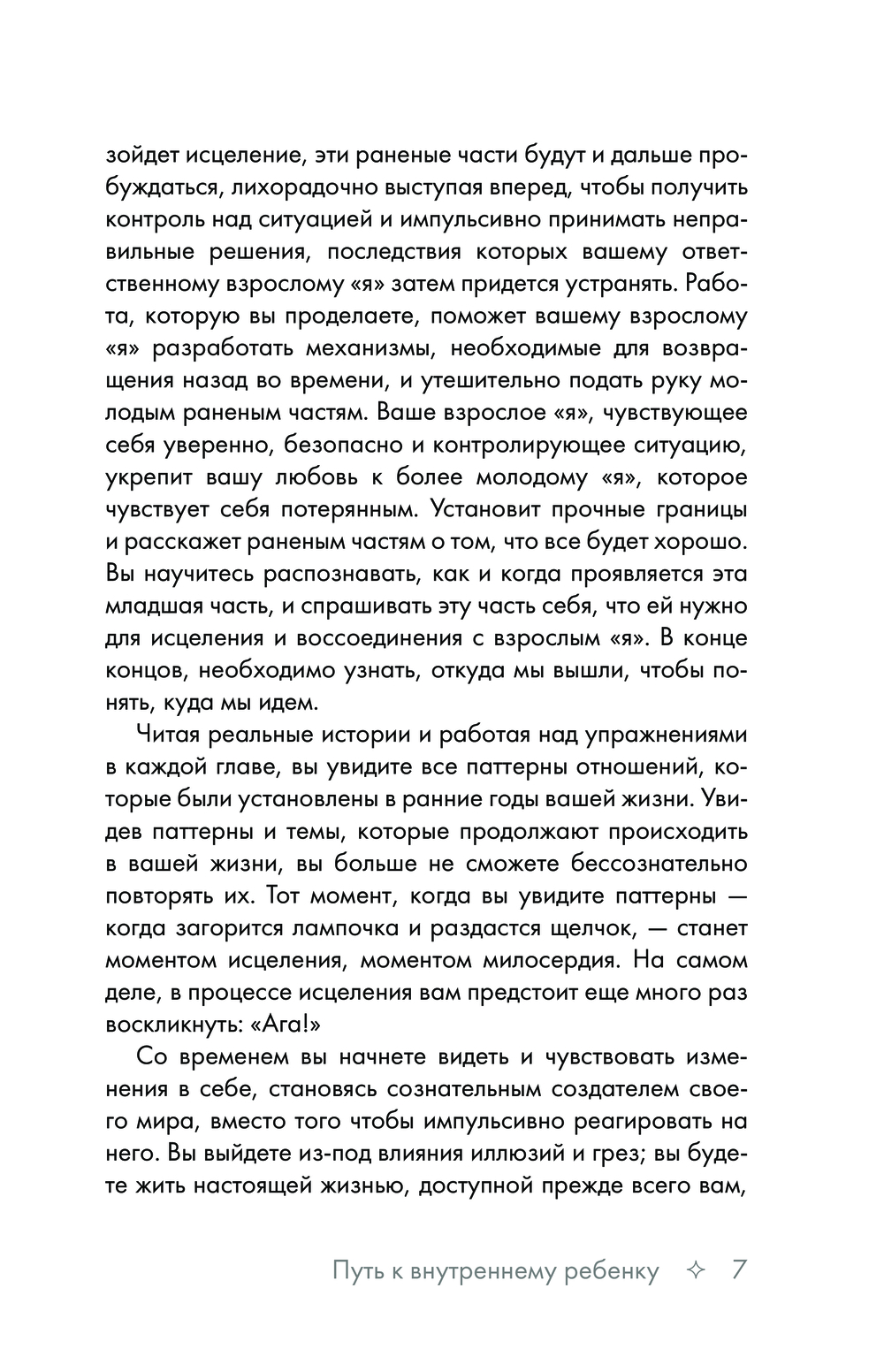 Помимо этого, вы прочтете истории людей, которые смогли справиться со своими детскими психологическими травмами, а также выполните упражнения, направленные на выявление и решение конкретных проблем.