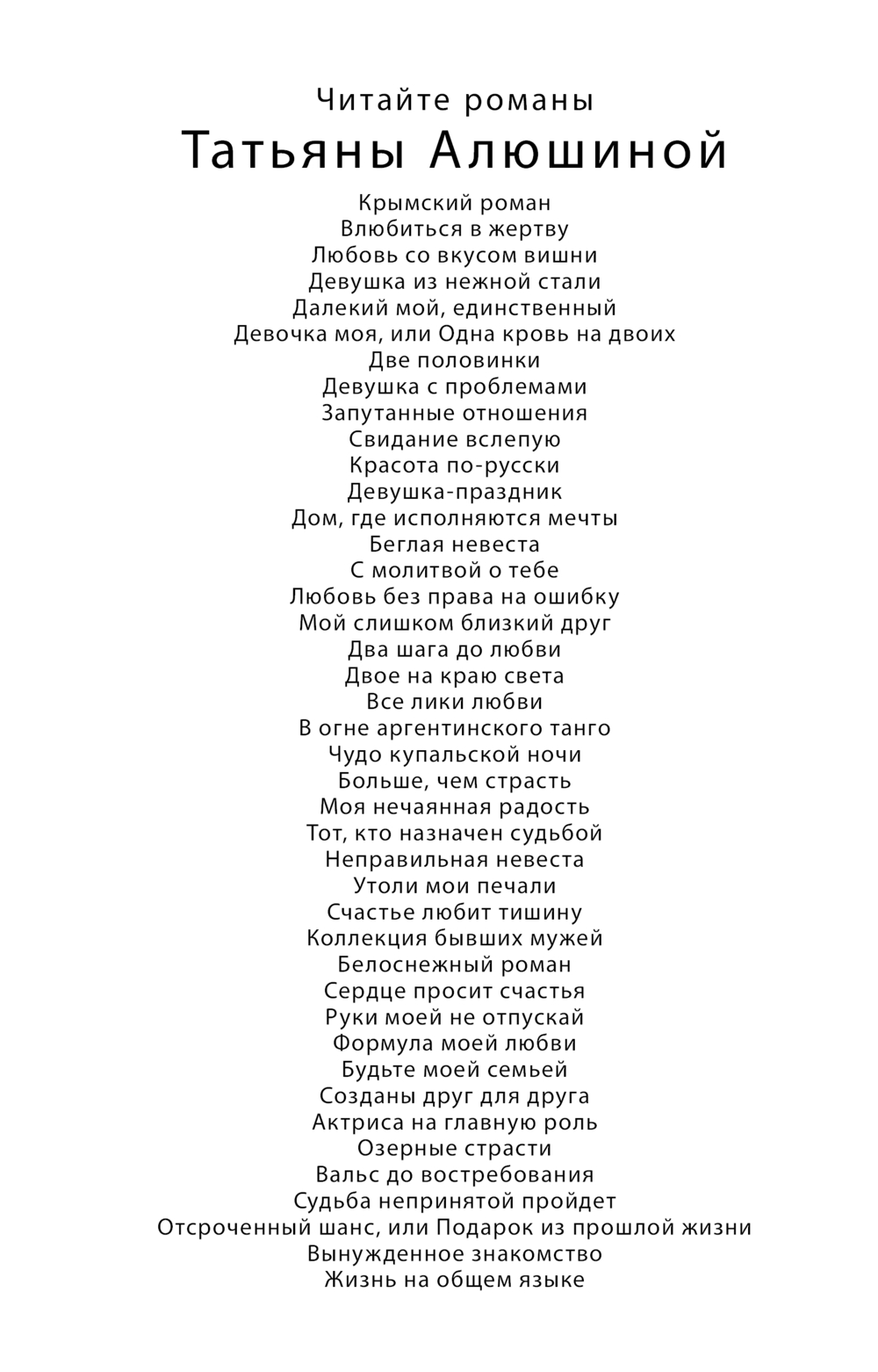 | Серия | Еще раз про любовь. Романы Т. Алюшиной |