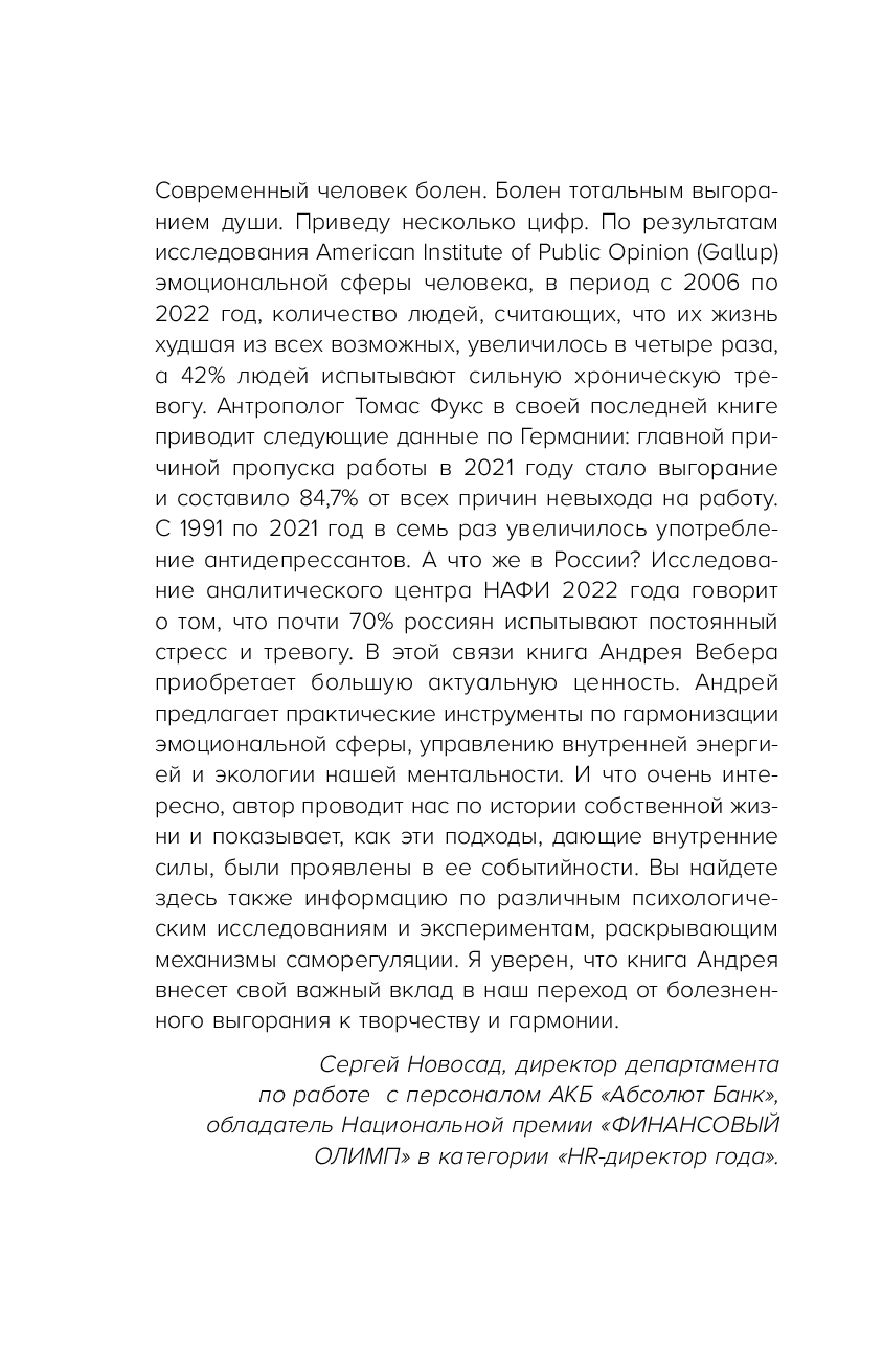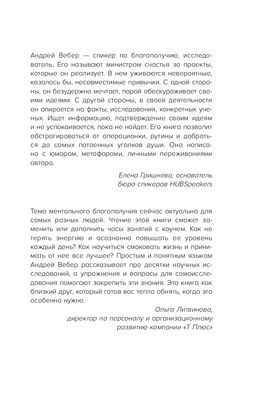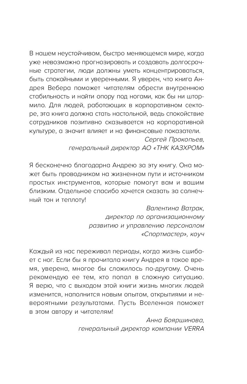 Именно об этом рассказывает Андрей Вебер – коуч первых лиц компаний и основатель проекта "Культура счастья". Из этой книги вы узнаете о 12 принципах управления своими мыслями, эмоциями, состоянием и поведением во время стресса и неопределенности.
