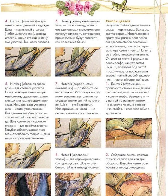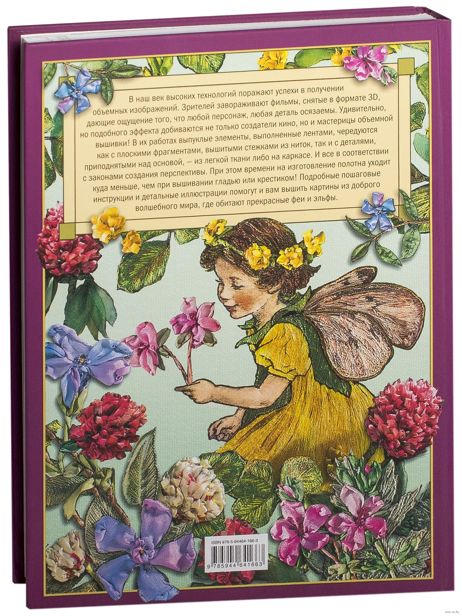 В наш век высоких технологий поражают успехи в получении объемных изображений. Зрителей завораживают фильмы, снятые в формате ЗD, дающие ощущение того, что любой персонаж, любая деталь осязаемы. Удивительно, но подобного эффекта добиваются не только создатели кино, но и мастерицы объемной вышивки! В их работах выпуклые элементы, выполненные лентами, чередуются как с плоскими фрагментами, вышитыми стежками из ниток, так и с деталями, приподнятыми над основой, – из легкой ткани либо на каркасе. И все в соответствии с законами создания перспективы. При этом времени на изготовление полотна уходит куда меньше, чем при вышивании гладью или крестиком! Подробные пошаговые инструкции и детальные иллюстрации помогут и вам вышить картины из доброго волшебного мира, где обитают прекрасные феи и эльфы.