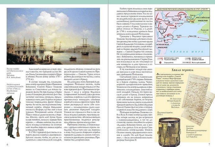 Боевой путь адмирала Фёдора Ушакова связан с важнейшими событиями российской истории конца XVIII в. Один из создателей Черноморского флота, Ушаков участвовал в войнах с Османской империей и наполеоновской Францией и не проиграл ни одного сражения – за все время его командования Россия не потеряла ни одного корабля. Благодаря полководческому таланту Ушакова значительная часть Черноморского побережья стала российской территорией, а в Крыму установился прочный мир.