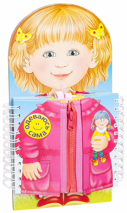 Книжка-тренажер поможет ребенку развить мелкую моторику, речевые навыки и самостоятельность.