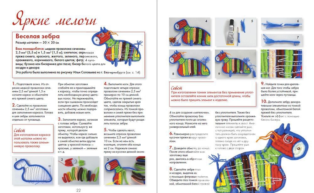 Все изделия в этой книге выполнены в уникальной технике, придуманной дизайнером Оксаной Жмаевой. Обвивая проволоку разноцветными нитками и укладывая ее в различные формы, Оксана создает необычные, мягкие и жизнерадостные работы под названием "моталки". Техника позволяет изготавливать самые разные предметы: от стильных аксессуаров и небольших декоративных фигурок до удивительных панно и других элементов интерьера. Сделать такую работу несложно: этот процесс не требует длительной подготовки. Свою собственную моталку вы сможете создать в первый же день, следуя подробному описанию из книги. Главное – ваш оптимизм и желание поделиться хорошим настроением, которого с каждой новой работой будет все больше и больше!