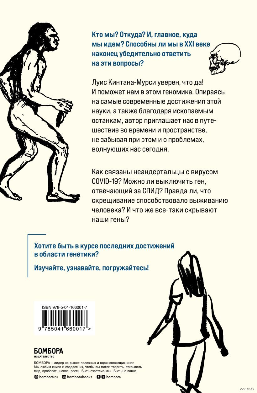 Кто мы? Откуда? И, главное, куда мы идем? Способны ли мы в XXI веке, наконец, убедительно ответить на эти вопросы? Луис Кинтана-Мурси, на счету которого более 200 публикаций в области популяционной генетики, уверен, что да! И поможет нам в этом геномика. Опираясь на самые современные достижения этой науки, автор приглашает нас в путешествие во времени и пространстве в поисках нашего происхождения и нашей судьбы.