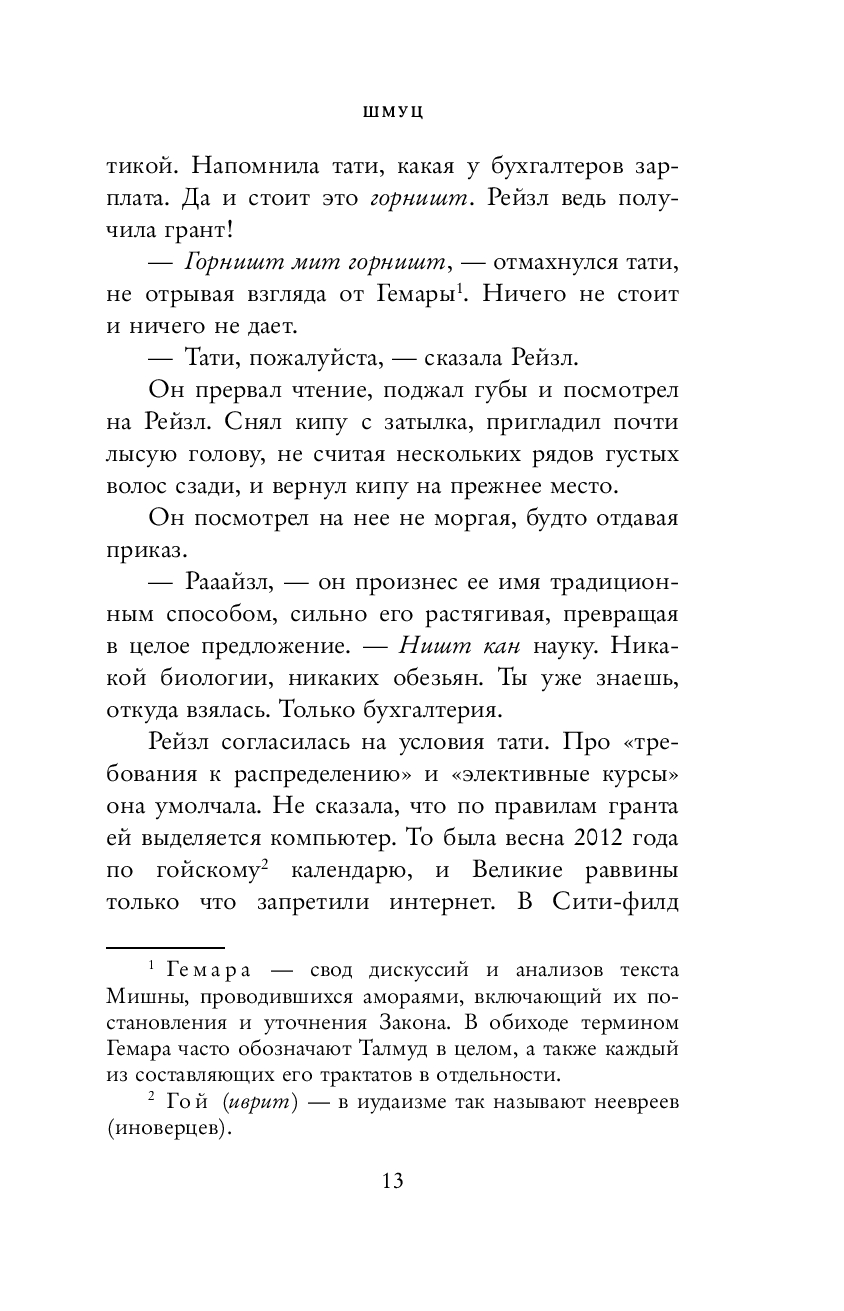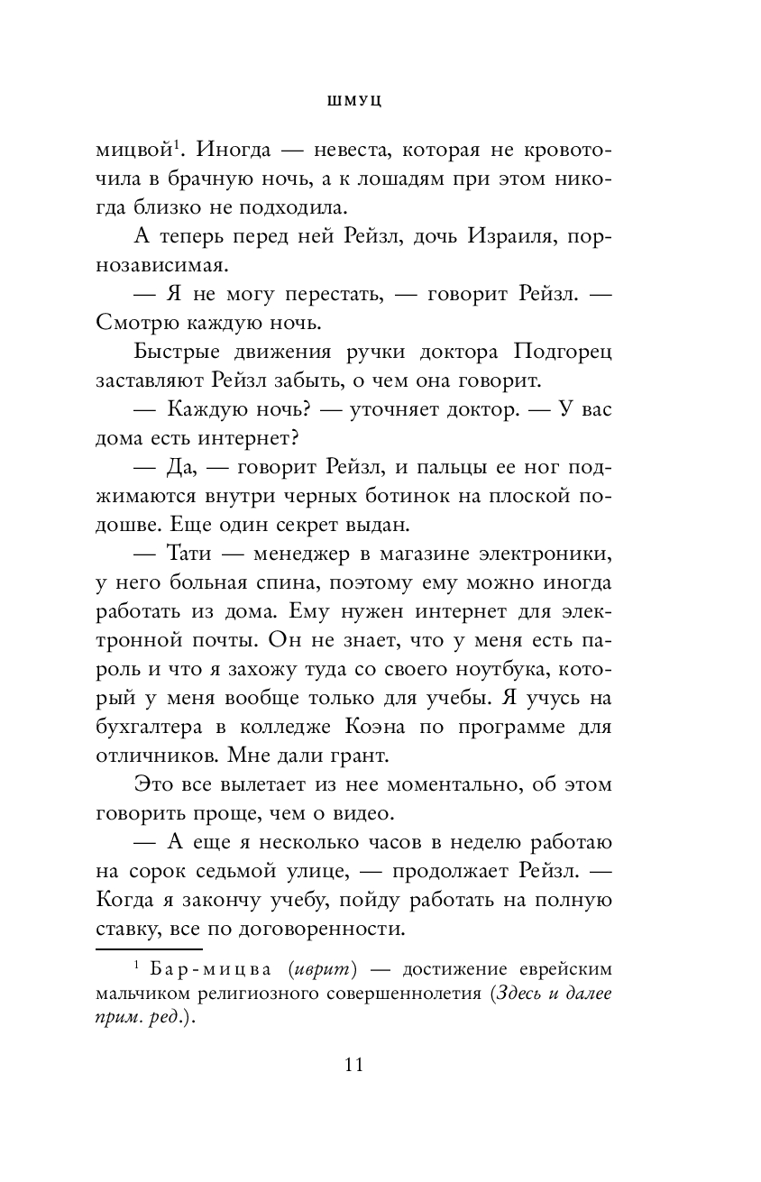 Днем Рейзл изучает бухгалтерское дело и помогает семье, а по ночам тайком от всех она открывает для себя удивительный мир. Мир, которого не существует в пределах ее общины. Мир, о котором не положено знать ни одной дочери Израиля. Мир грязных видео. Мир шмуца.