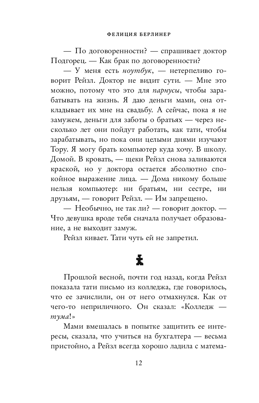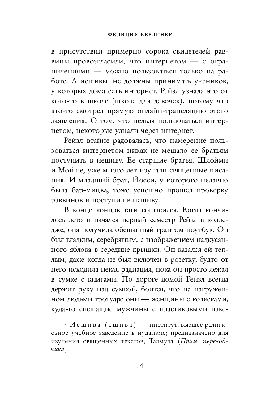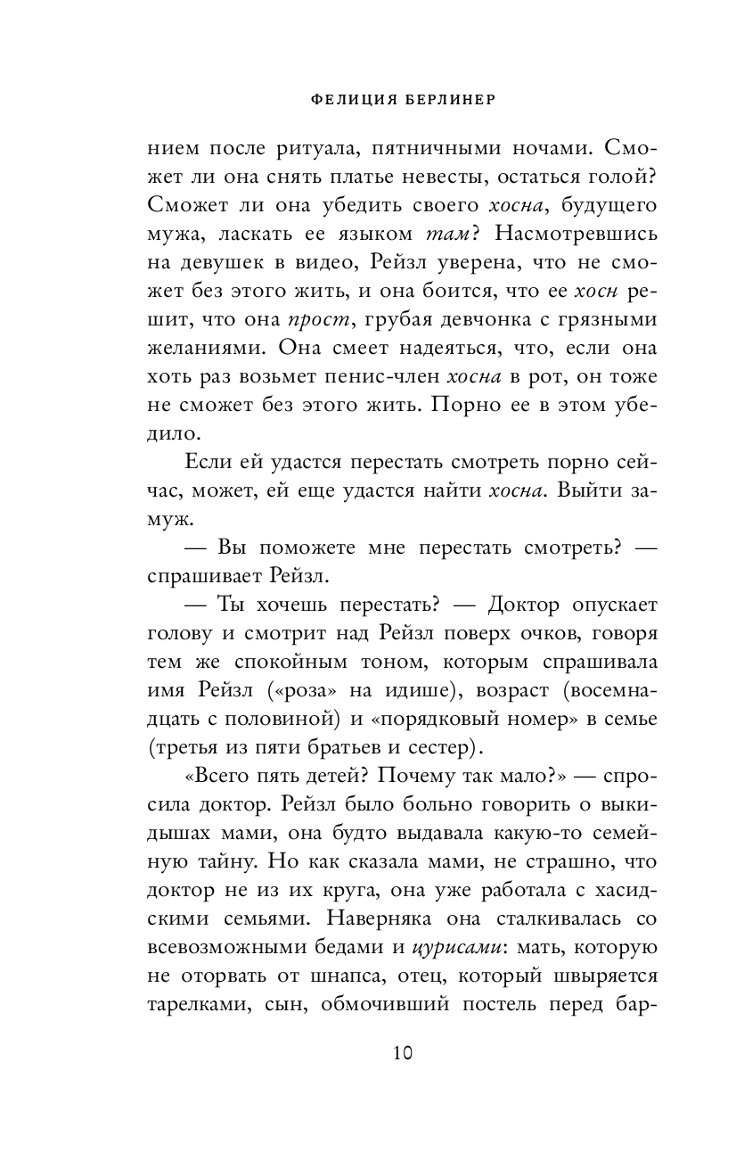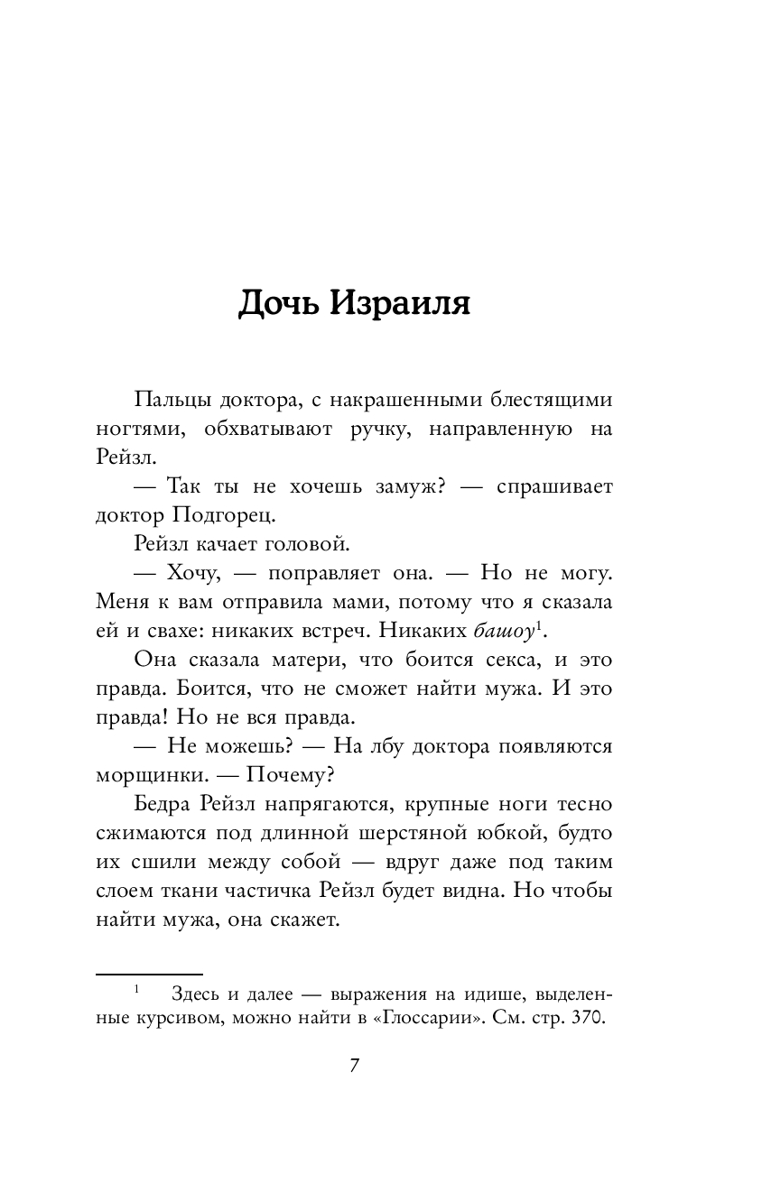 Рейзл восемнадцать, она родилась и выросла в Бруклине, в ортодоксальной общине. Как и все, она хочет выйти замуж и стать хорошей еврейской женой и матерью. Но в отличие от других, у Рэйзл есть тайна, которая может лишить ее будущего.