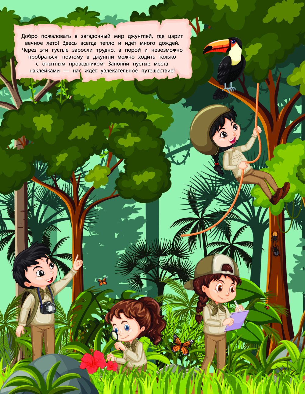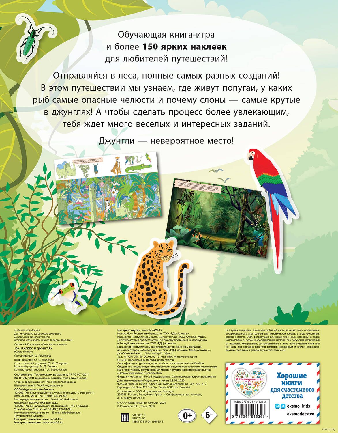 "150 наклеек. В джунглях" – это увлекательная книга с наклейками, разработанная специально для детей в возрасте от 4 до 7 лет. В этой книге дети отправятся в захватывающее путешествие в джунгли, где им предстоит встретить удивительных животных и разнообразные растения.