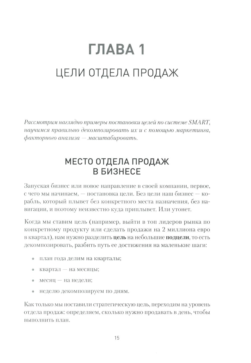 В книге раскрыты такие важные вопросы, как планирование и привлечение клиентов, аудит и анализ отдела продаж, подбор и обучение сотрудников, создание скриптов продаж и использование систем автоматизации, масштабирование бизнеса и работа в кризис.
