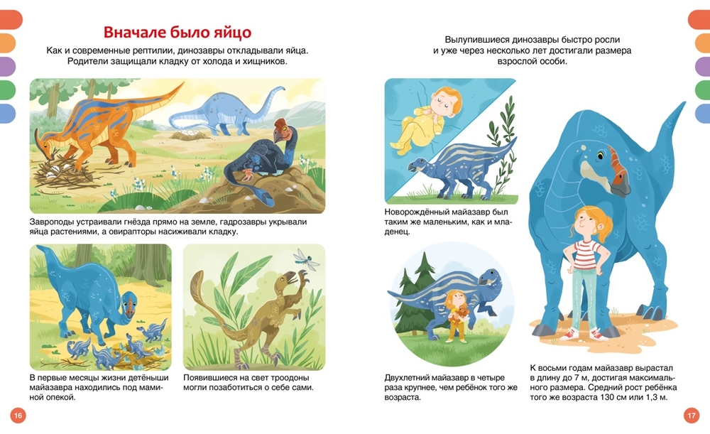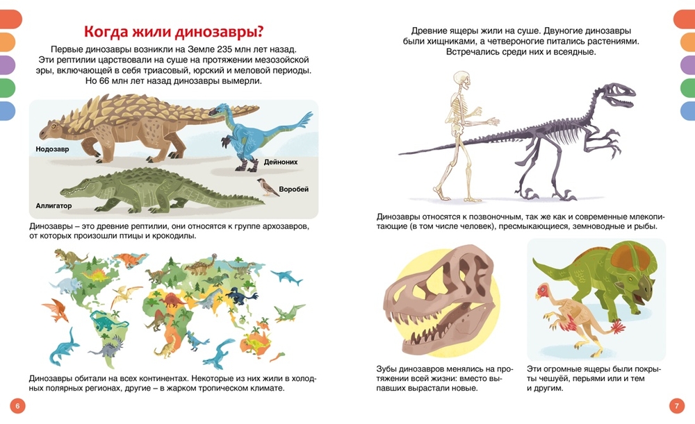В этой книге представлены не только самые знаменитые, но также недавно открытые динозавры – грозные хищники, мирные гиганты и юркие охотники. У одних были острые клыки и огромные когти, у других – необычные выросты на голове и теле, а у некоторых даже имелся клюв или яркое оперение! Юные читатели не только узнают всё о древних ящерах, но также познакомятся с животными, которые обитали на Земле вместе с динозаврами.
