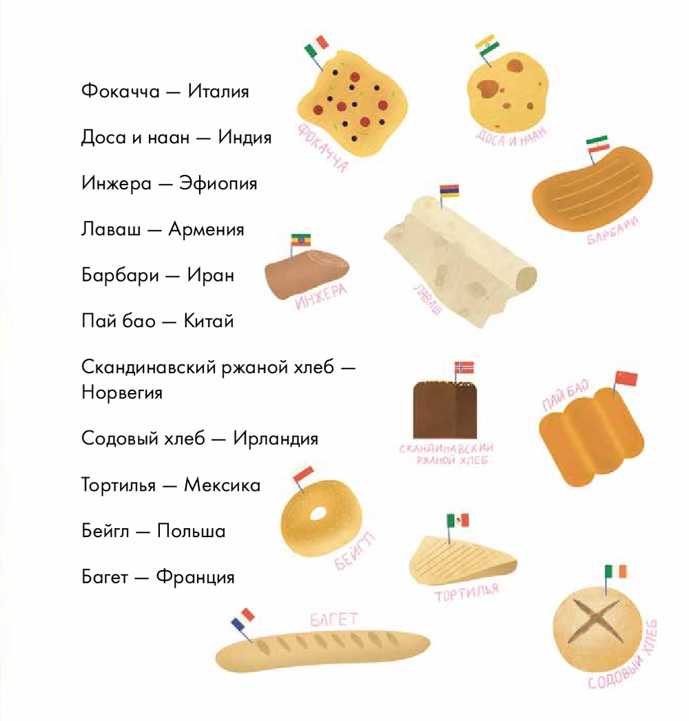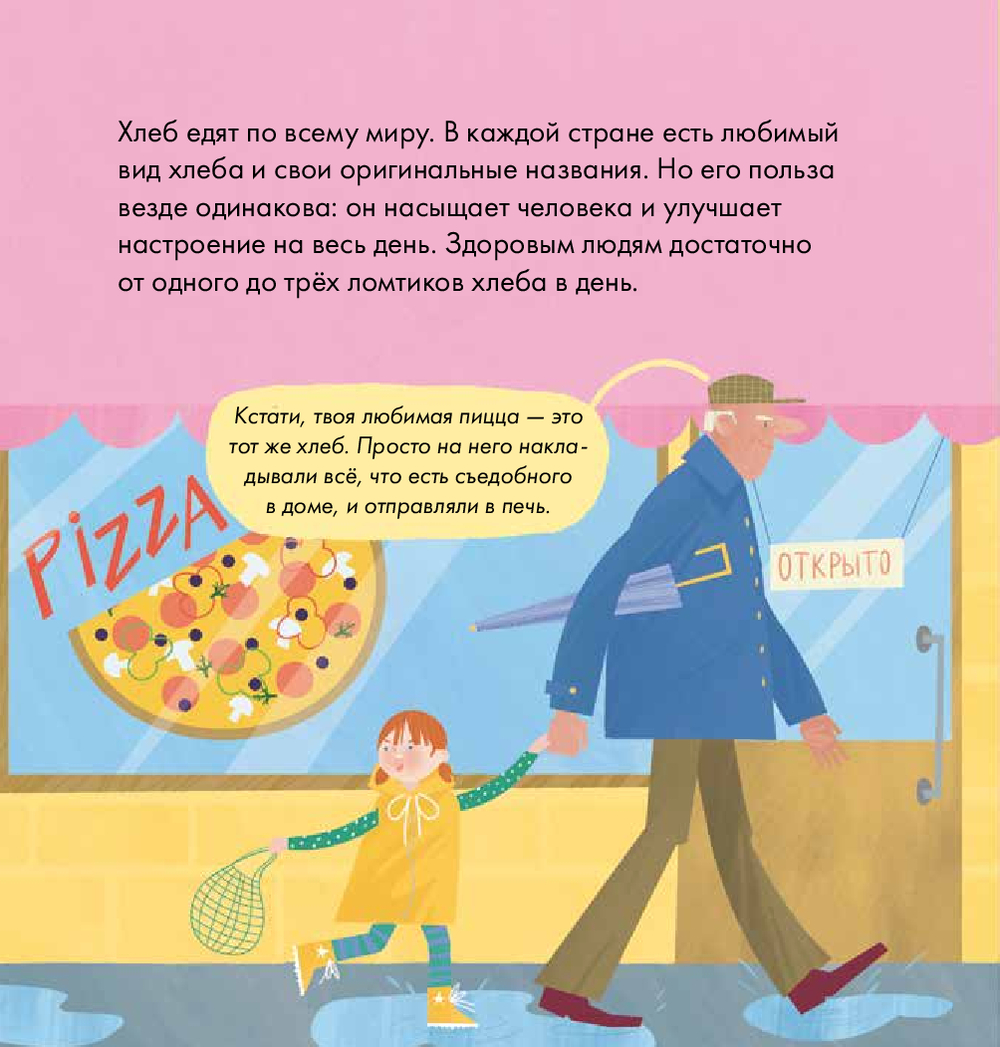 В конце книги есть несколько рецептов с хлебом и из теста, а также гид для родителей, который расскажет, как нормировать количество хлебобулочных изделий в рационе ребенка.