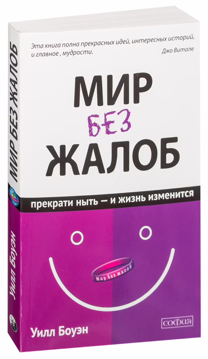 Эта книга преобразит вашу жизнь. Миллионы людей во всём мире на собственном опыте убедились: программа Уилла Боуэна "Мир без жалоб" – работает! В её основе лежит очень простая идея: положительные перемены в любой момент готовы произойти в нашей жизни, и чтобы впустить их, нужно лишь отказаться от привычных проявлений недовольства. "Если вы поймали себя на том, что жалуетесь, просто наденьте браслет на другую руку!" Сегодня этот вызов приняли более шести миллионов человек. Задача предельно проста, но трудновыполнима (попробуйте – и убедитесь сами!): прожить двадцать один день подряд, не жалуясь, не критикуя и не сплетничая. Помогите изменить этот мир и себя самого!