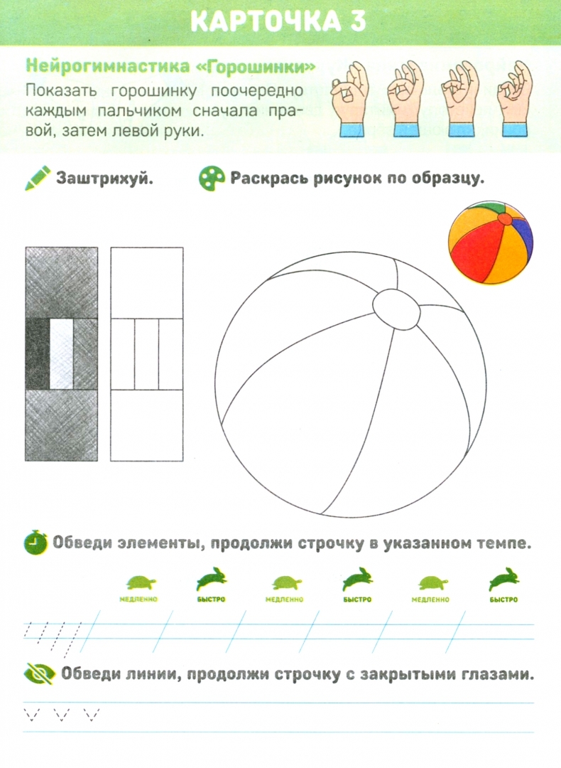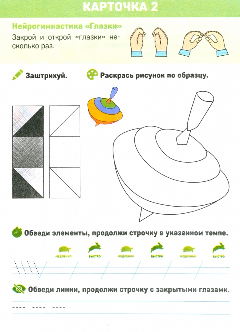 Задания в тетради целенаправленно тренируют различные навыки, необходимые для обучения письму: регуляция напряжения мышц; внимание и зрительно-моторная координация; умение контролировать темп письма и соблюдать границы строки; ориентация в пространстве и межполушарное взаимодействие.
