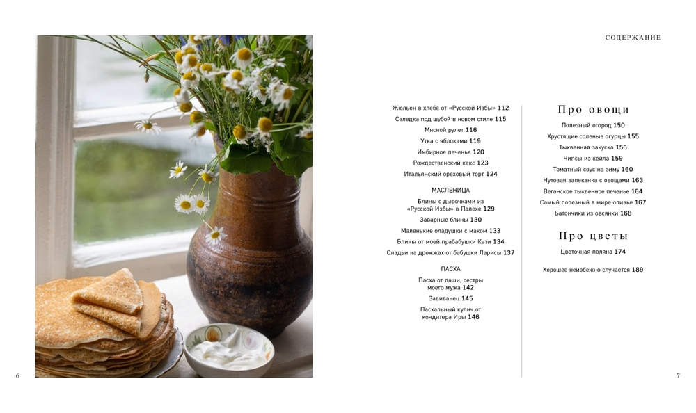 Вас ждет краткий курс флористики, чтобы создать лучший букет из полевых цветов, первоцветов и веток березы. Бесценные советы, как вырастить пухлую тыкву, хрустящие огурчики и пряные травы и какие невероятные вкусности приготовить из них. Круговорот идей по декору стола и оформлению блюд, манящие истории про сервизы и буфеты, чай со смородиной и самовар на еловых шишках.